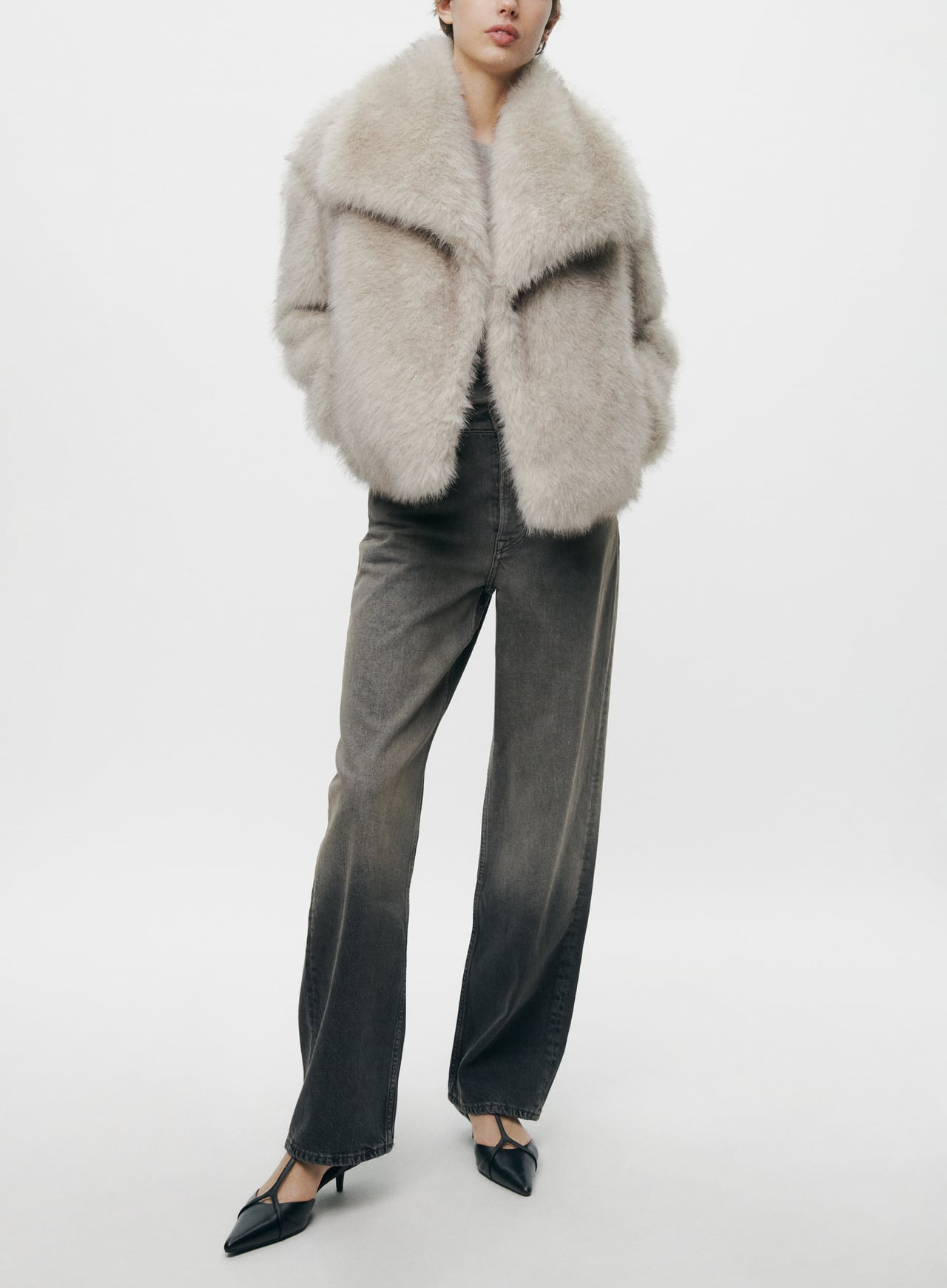 2025年新款皮草外套女环保毛毛大翻领时尚加厚百搭英跨境伦风大衣