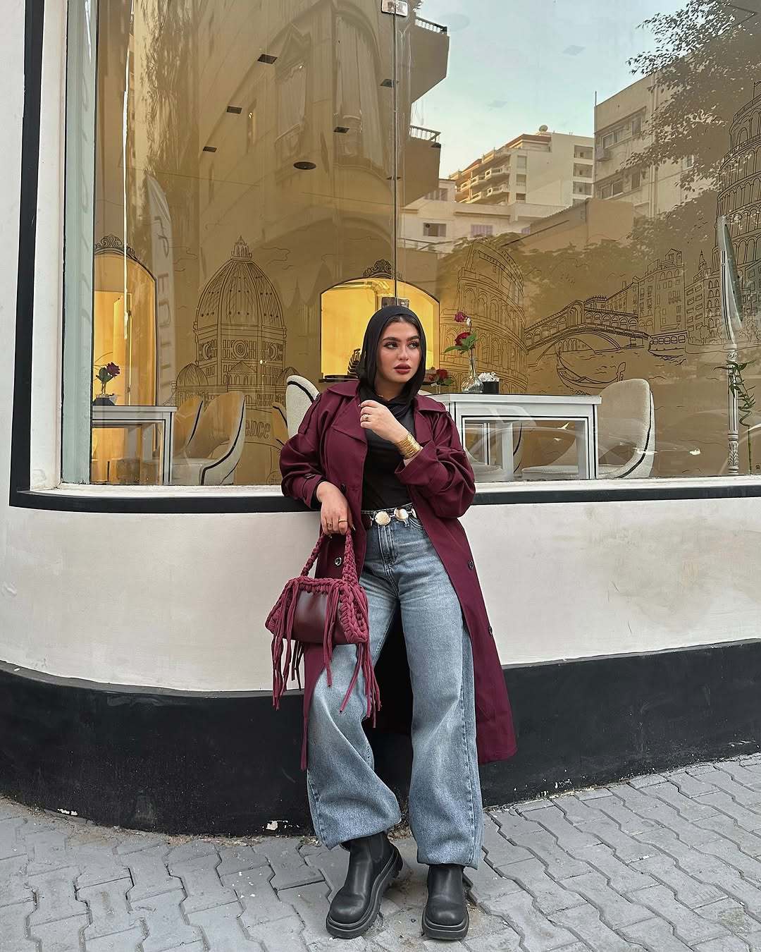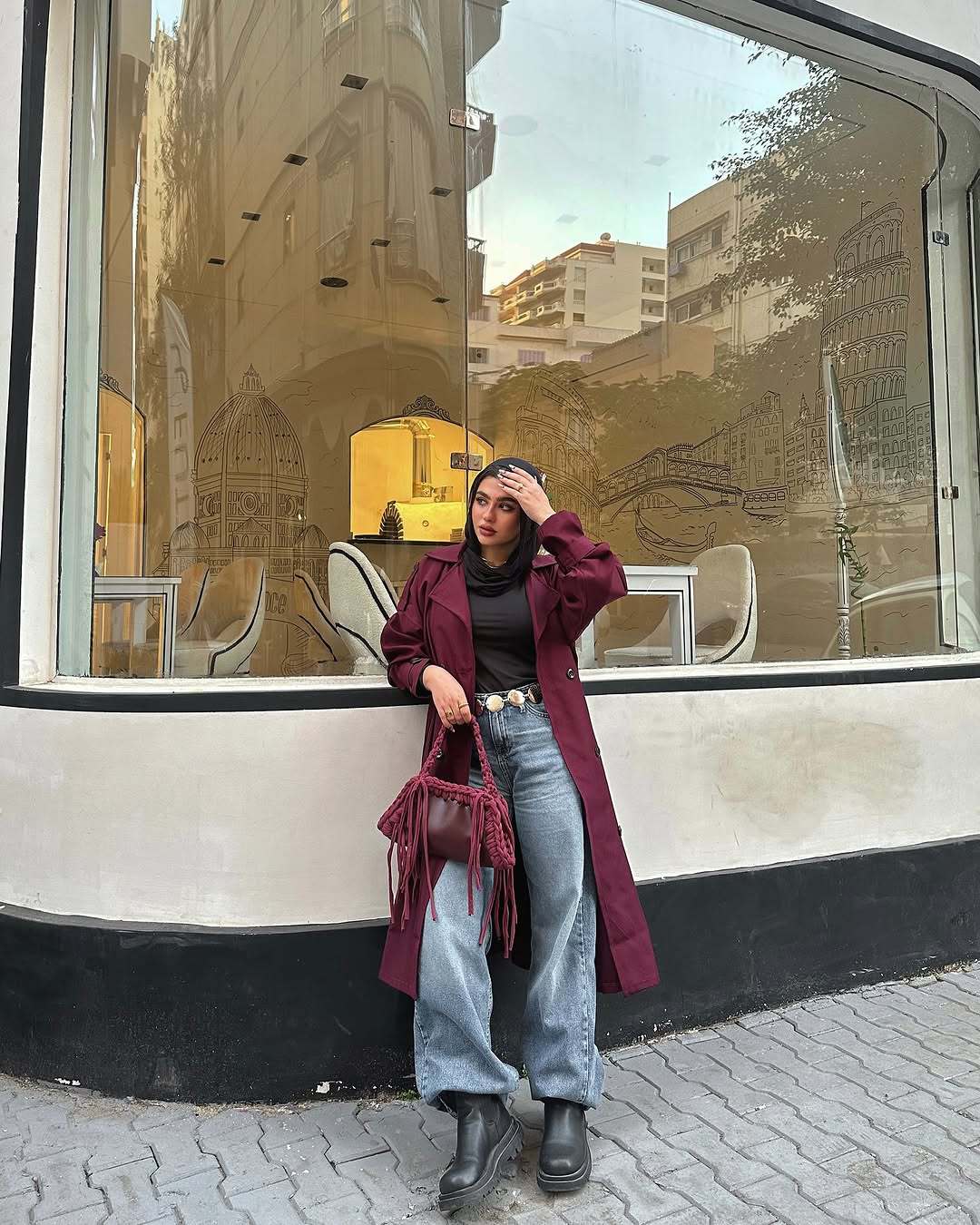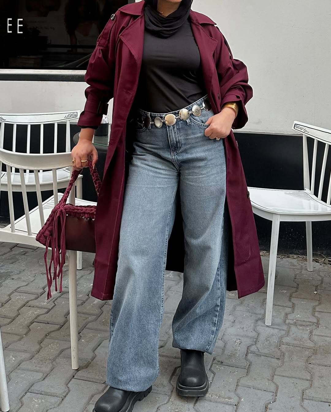実際に新型のワインレッド秋冬の折り返しの長袖の中の長いタイプのカジュアルなファッションのゆったりしている風の服の欧米の越境の婦人服