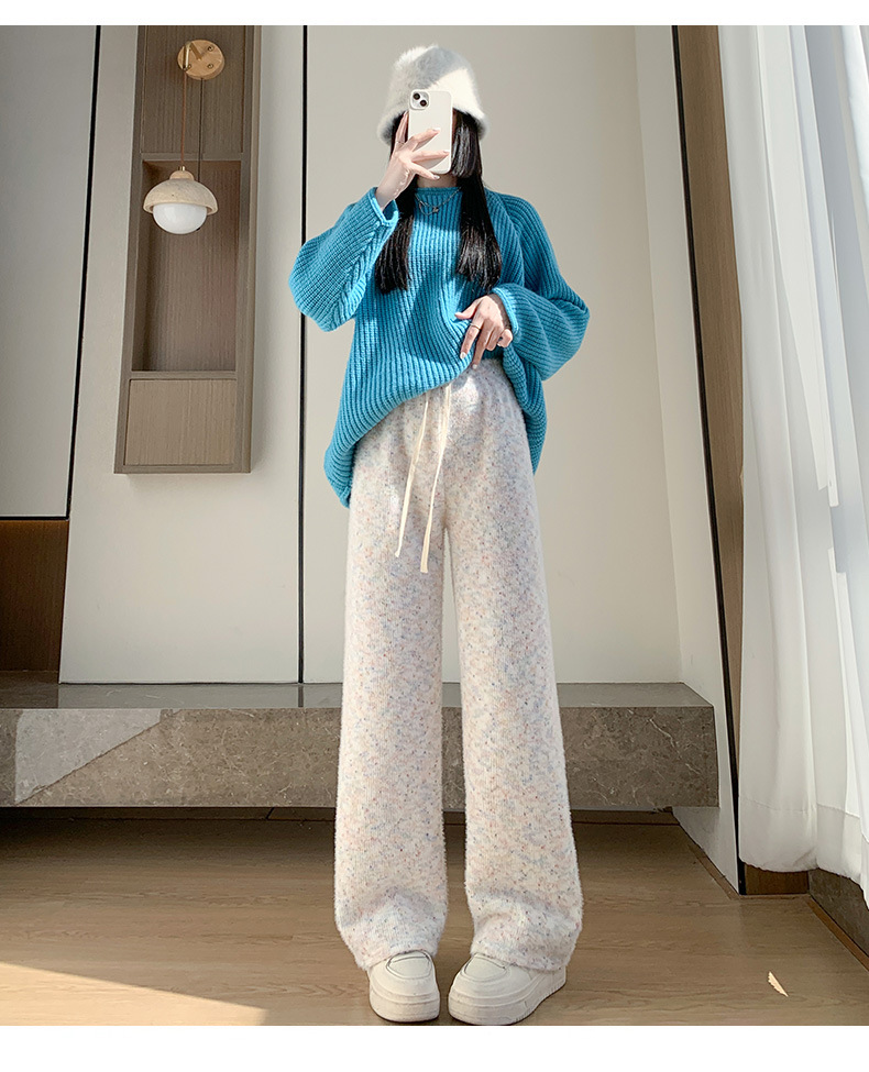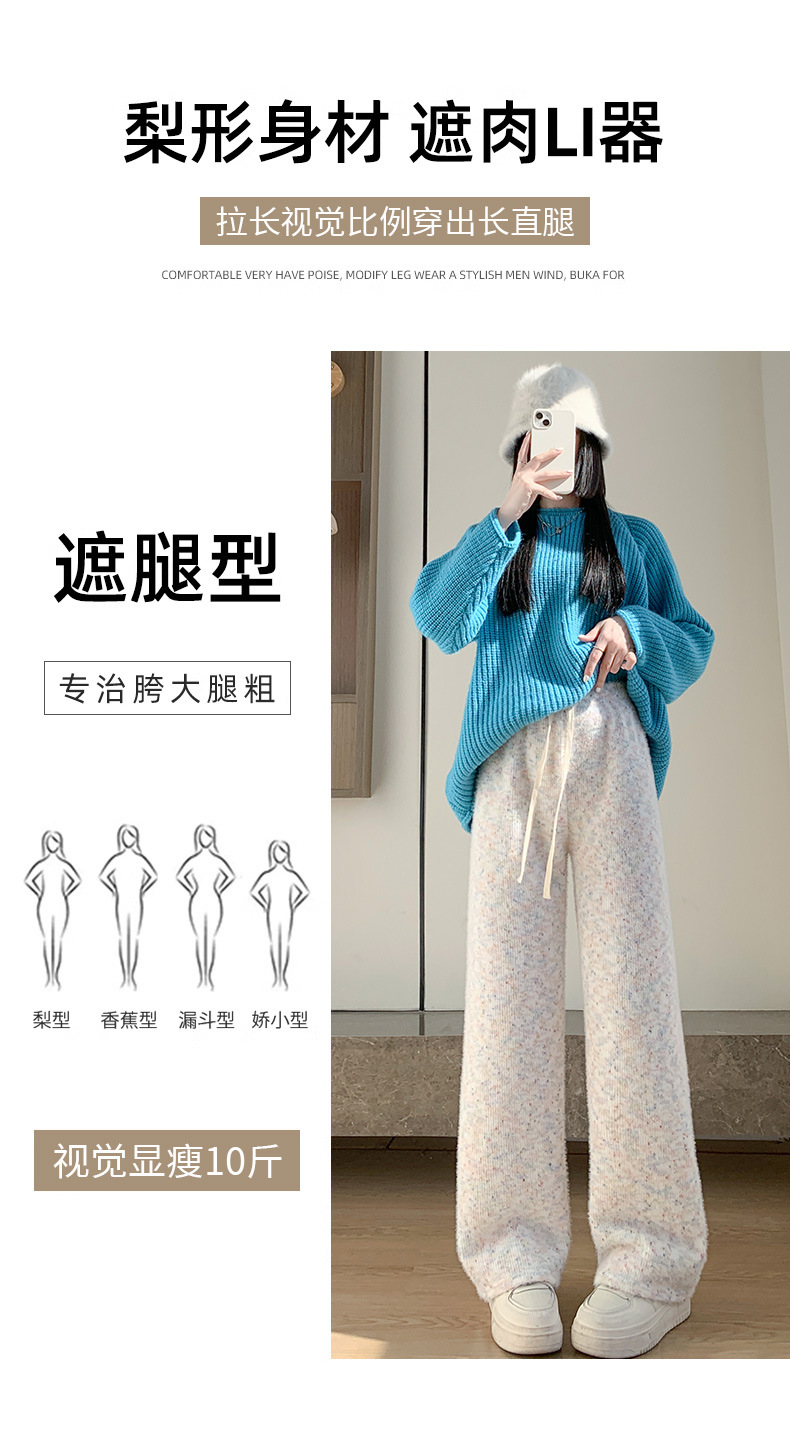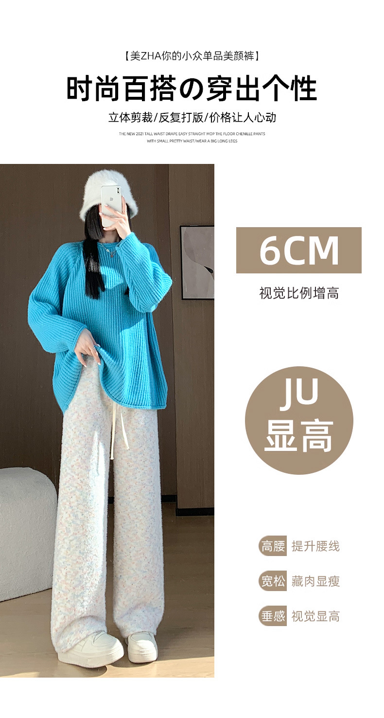 パイル広脚ズボン女2024秋冬ベルベット厚さもち米ズボンミンクパイル直筒ズボン高腰痩せカジュアルパンツ