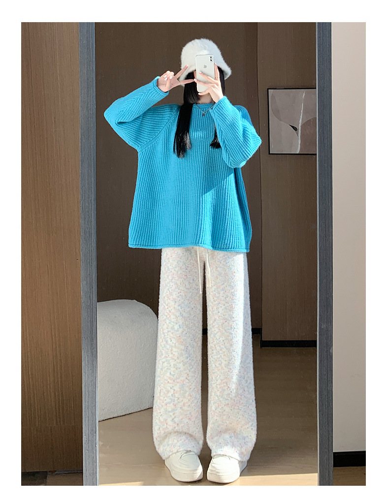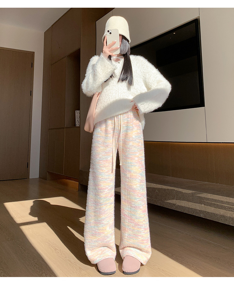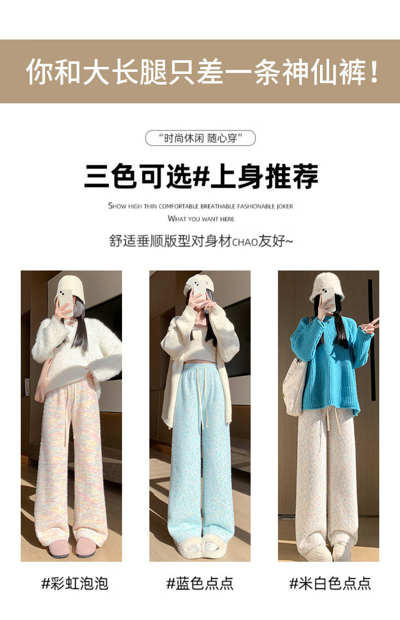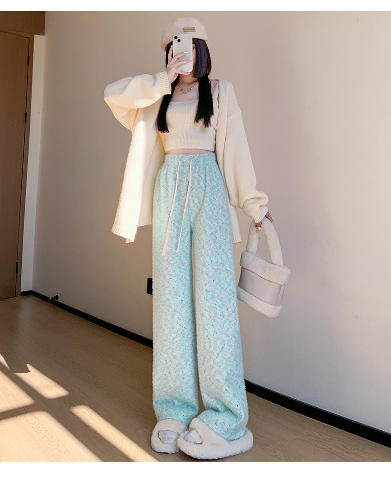 パイル広脚ズボン女2024秋冬ベルベット厚さもち米ズボンミンクパイル直筒ズボン高腰痩せカジュアルパンツ