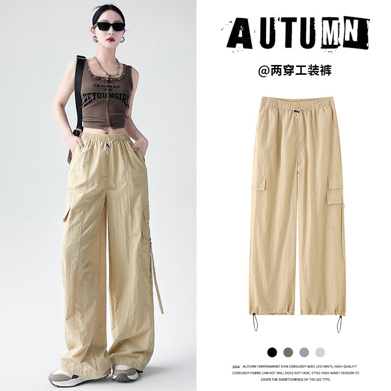 2着のスポーツズボンの女性春秋夏2024新型のゆったりしたストレートカジュアル2着のワイドグレーのアメリカンパンツ