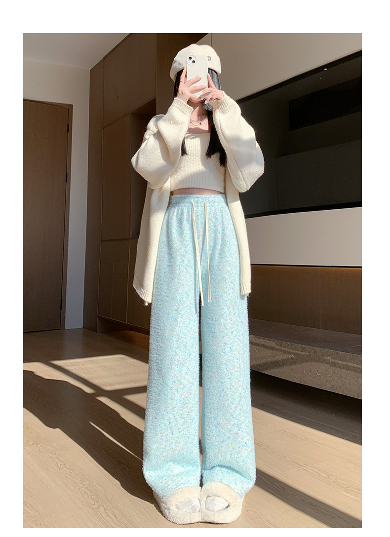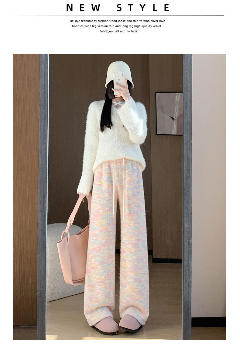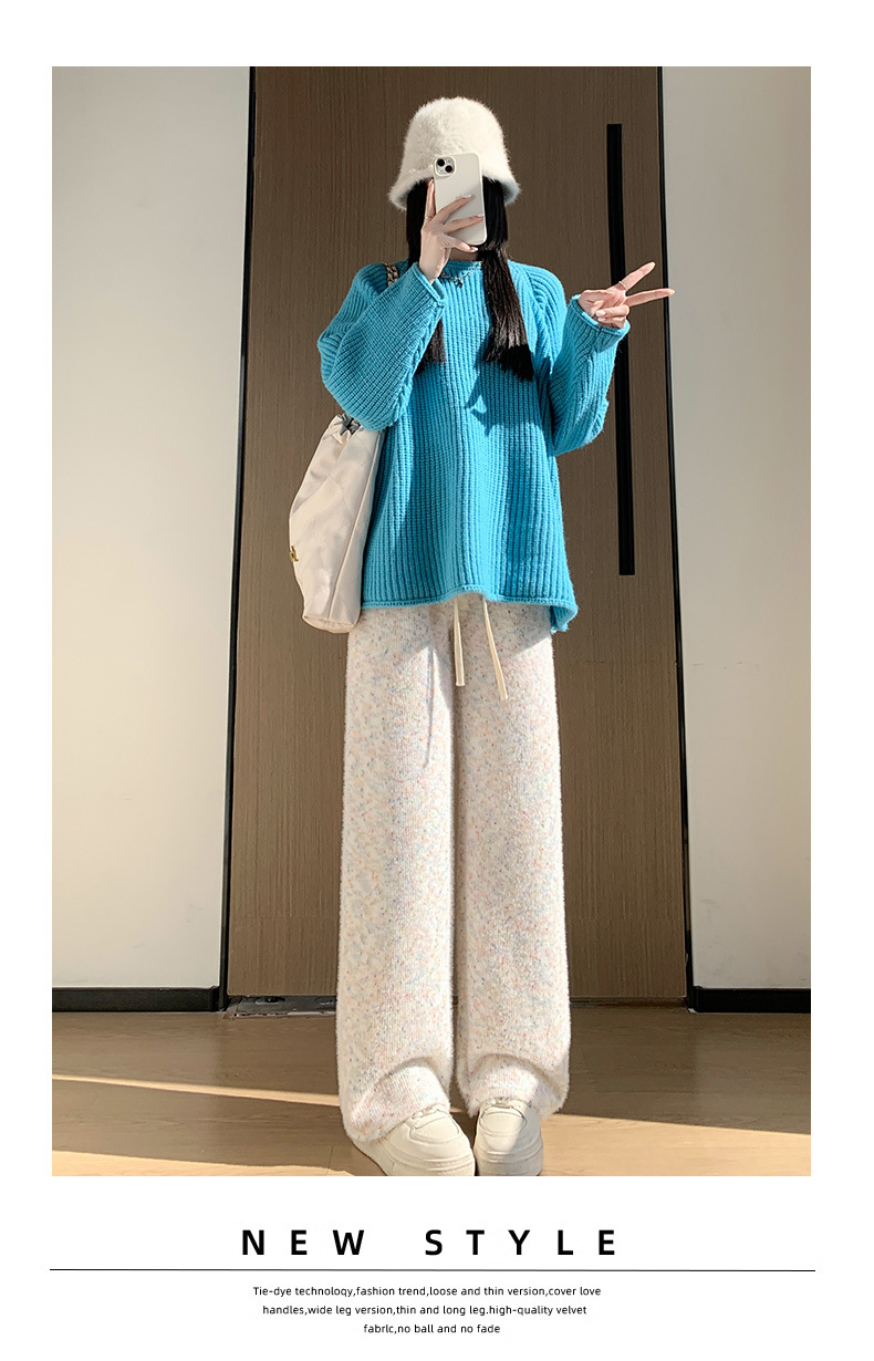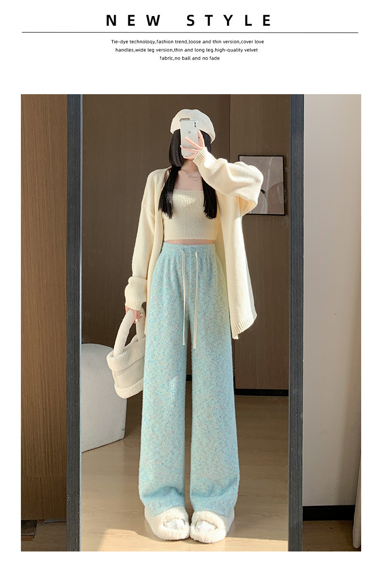 カシミヤのスポーツズボンの女性秋の冬のベルベットの2024の新しいペンダント感の柔らかいモチとしたゆるいストレートのロングパンツ