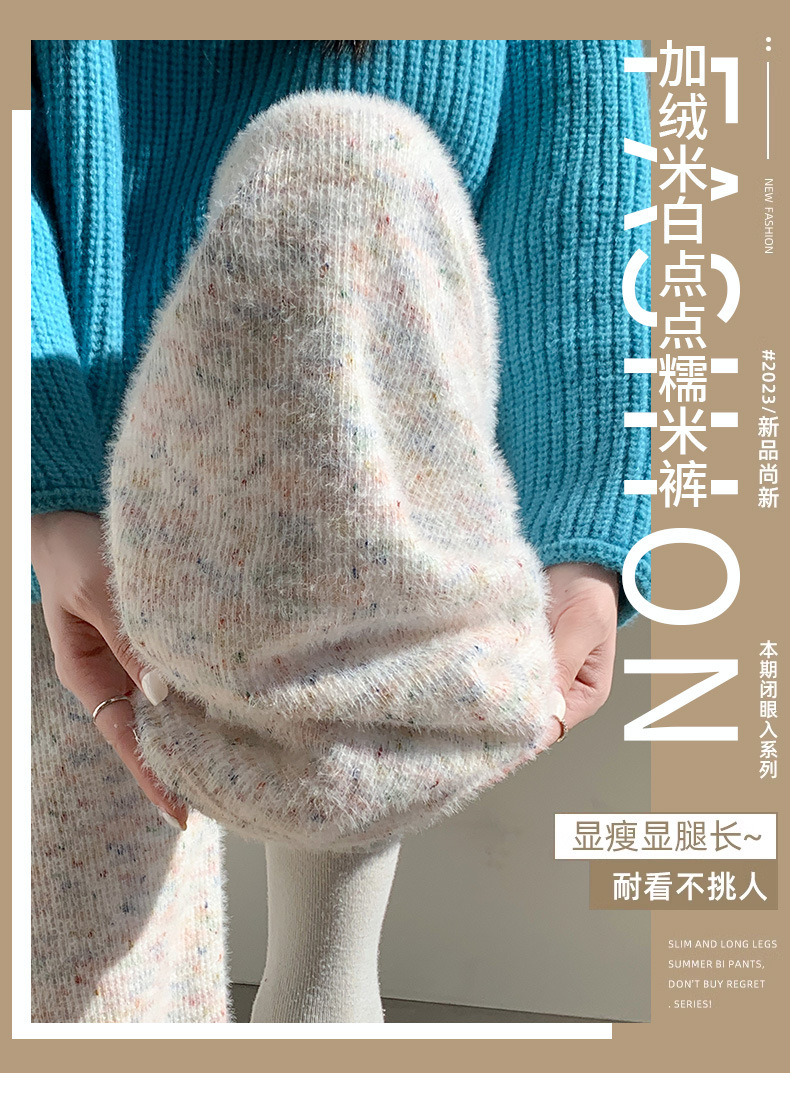 ベルベットは毛を厚くしていますね。格子縞のズボンの女性は秋冬に腰が高くて痩せています。