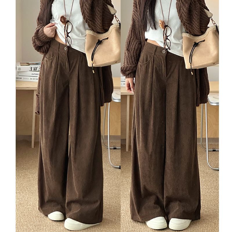 咖色阔腿裤女秋冬美拉德宽松棕色休闲运动2025新款加绒灯芯绒裤子