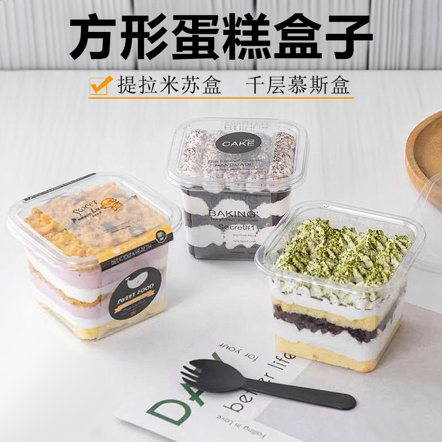 蛋糕盒子包装盒小提拉米苏慕斯甜品一次性打包奶油方形网红透明罐