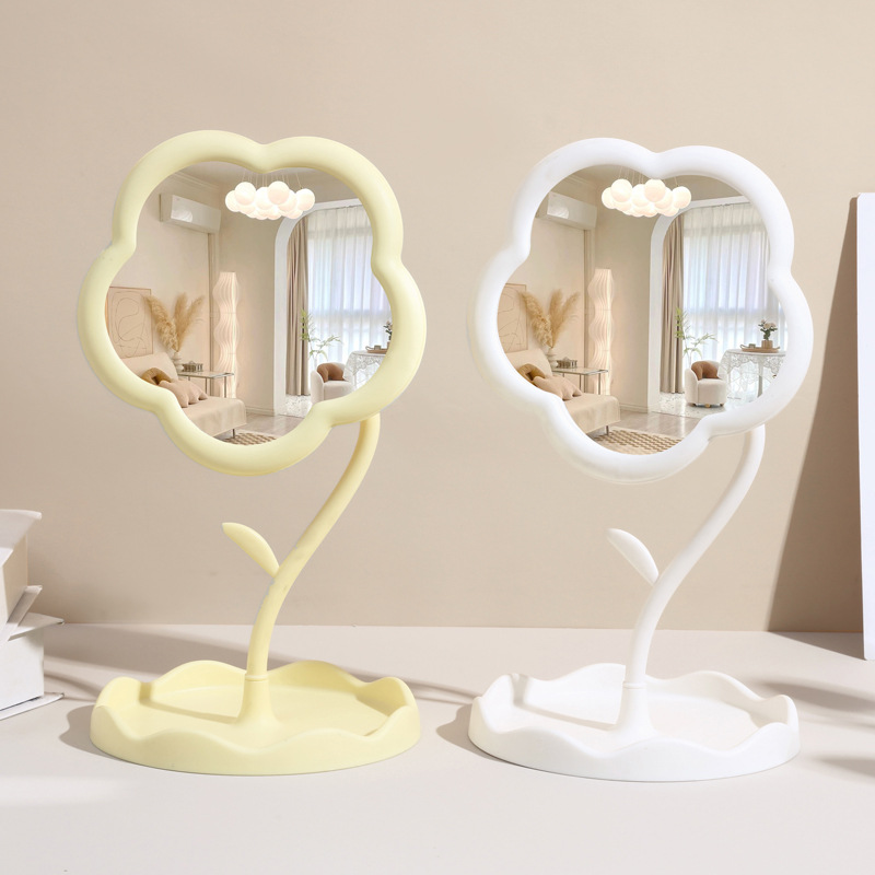 クリームの花の化粧鏡のデスクトップの鏡の事務室の学生の寮の高清の回転の化粧台の鏡