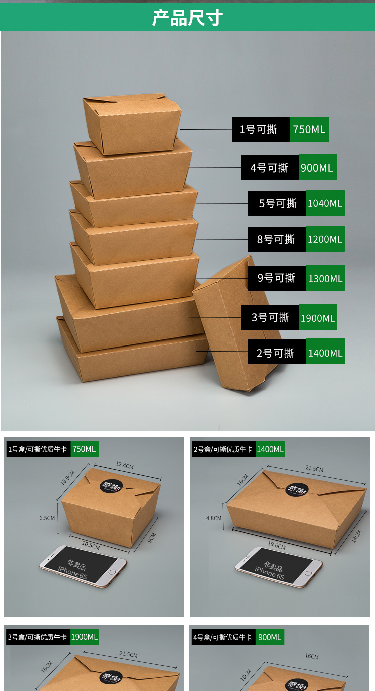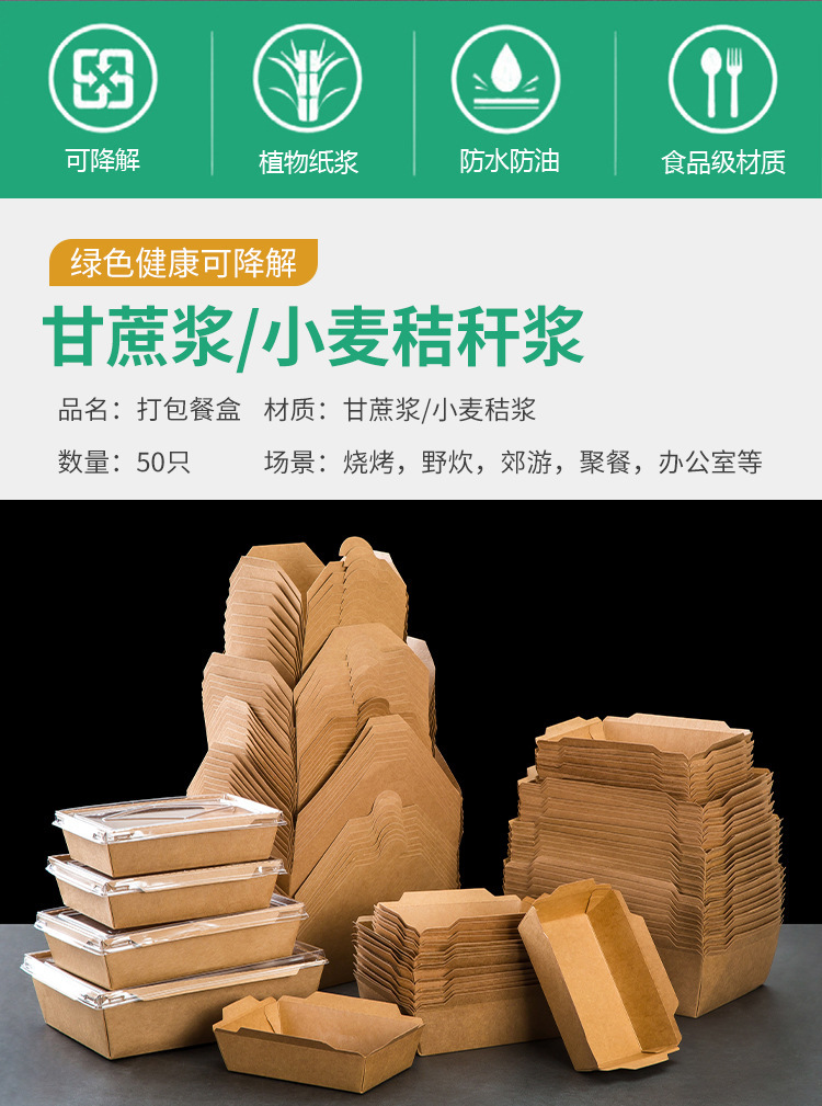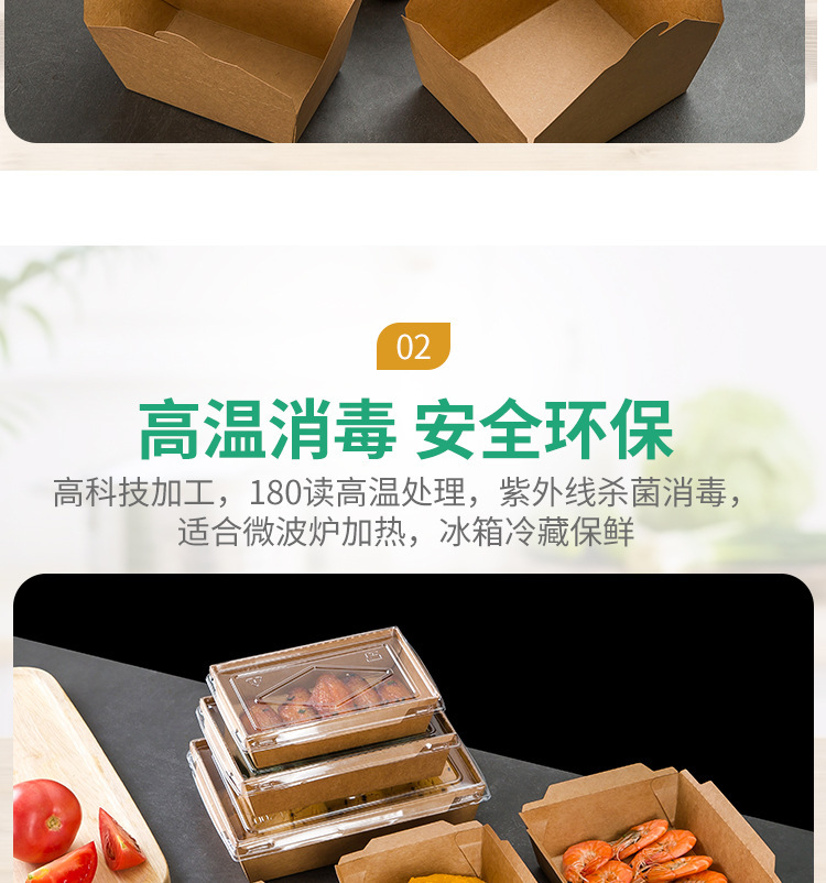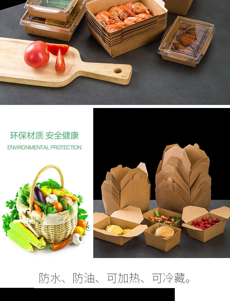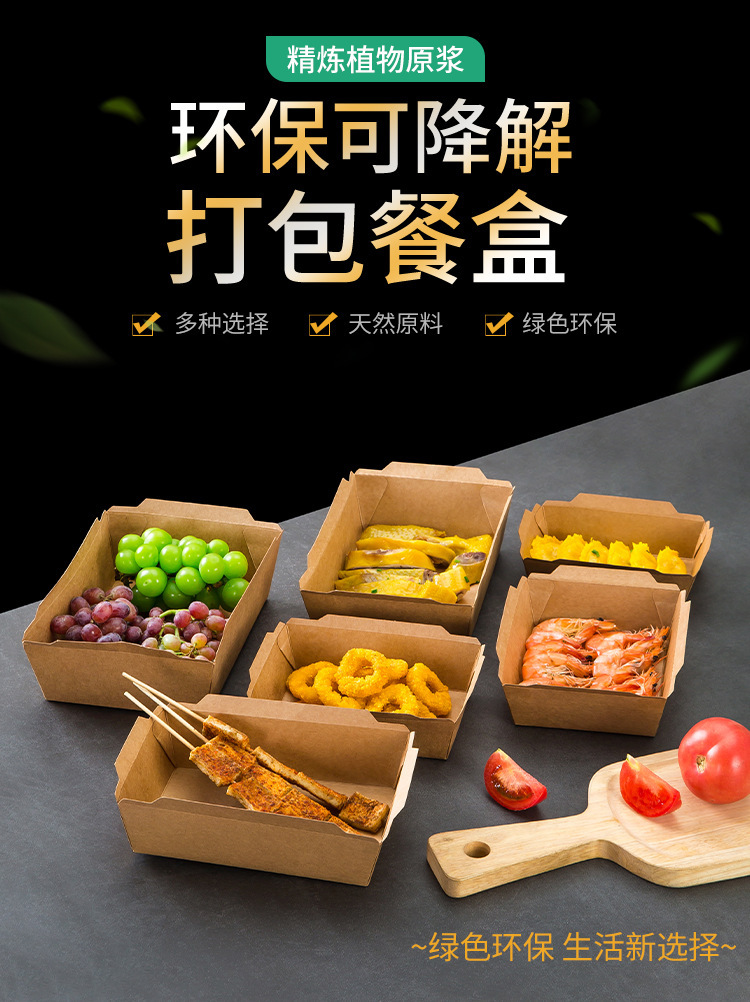 使い捨て牛革紙製ランチボックス、食品グレード、寿司、ピクニック、フルーツボックス、家庭用、電子レンジ対応