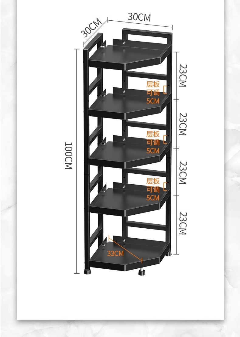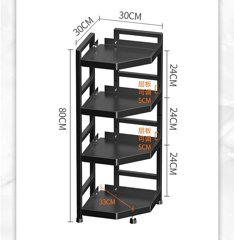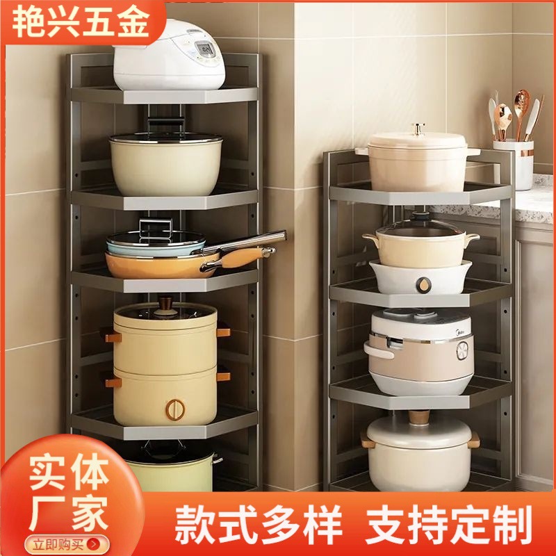 厨房置物架落地多层锅具架枪灰色转角三脚收纳储物架子放电饭锅架