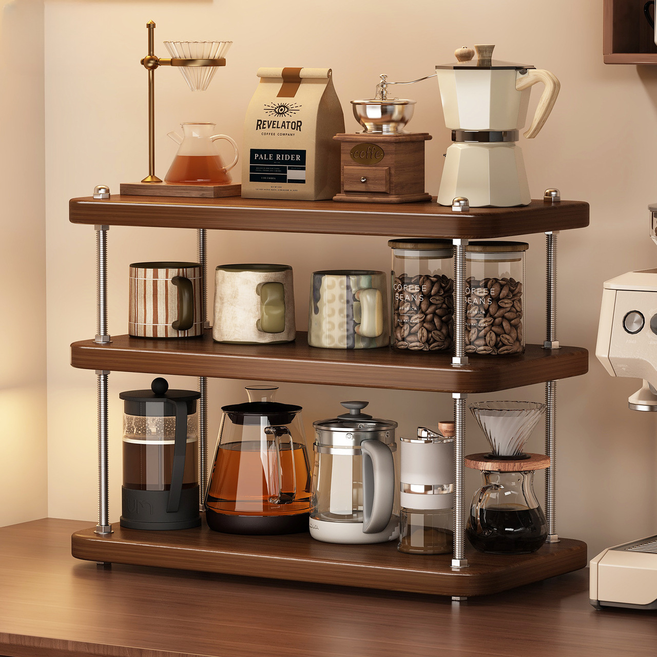 中古风置物架室内茶杯架办公桌隔层架工位桌面收纳小书架厨房架子