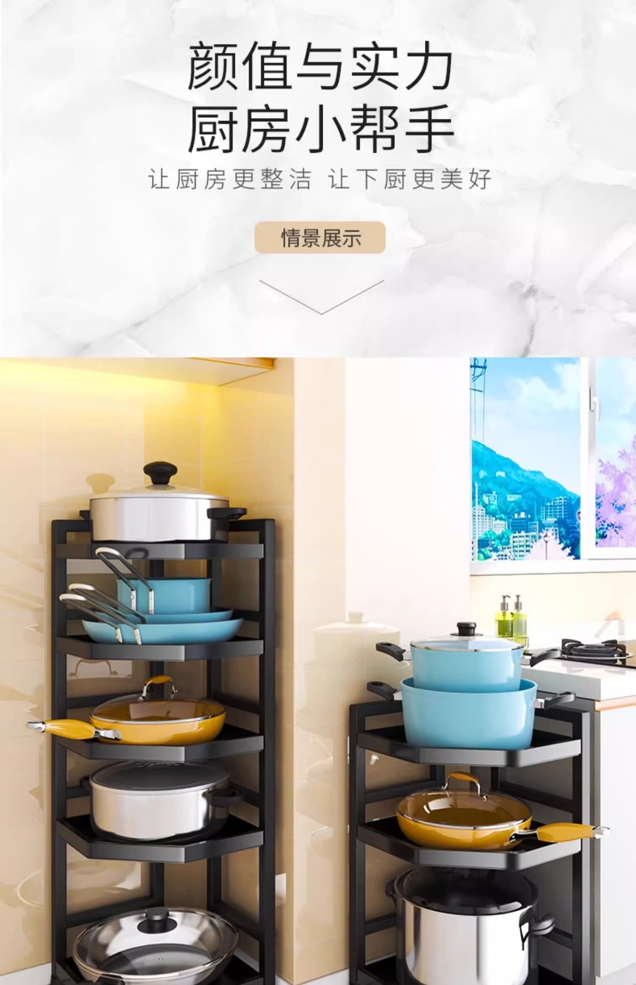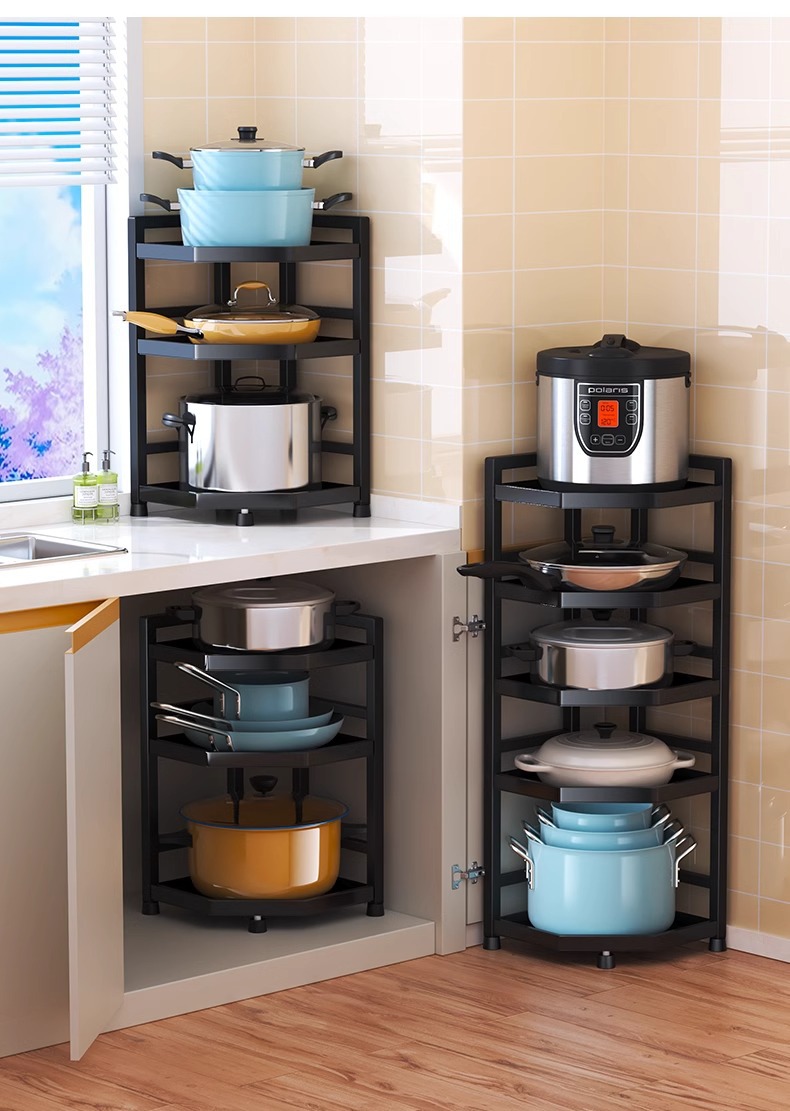 锅架厨房三角架直角置物架落地转角收纳家用多功能多层放锅储物架