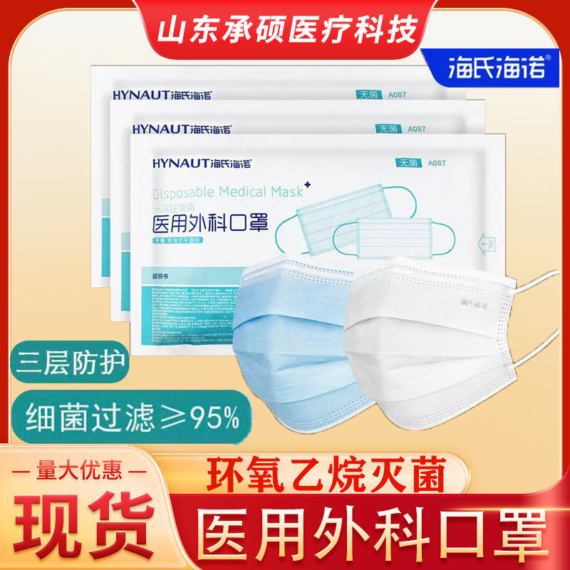 海氏海諾医療用外科マスク10匹は三層防護スポットを入れて、使い捨ての成人医療用マスクを卸売りします。
