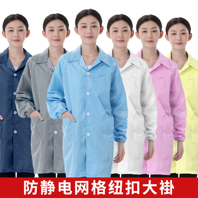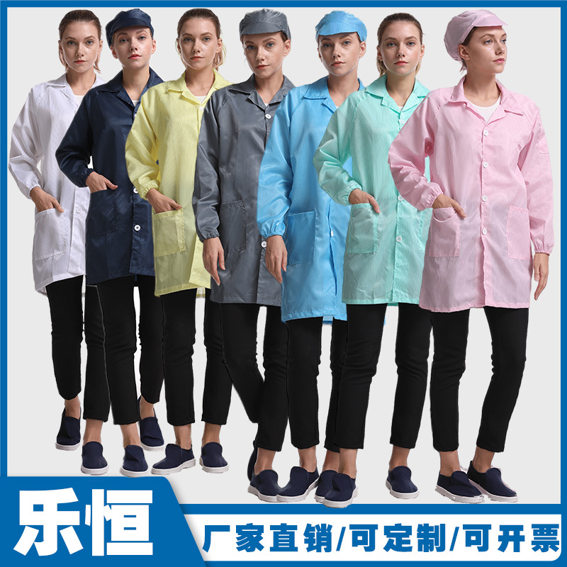 クリーン服静電衣長型コート電子工場防塵ブルー白色男女静電服作業服