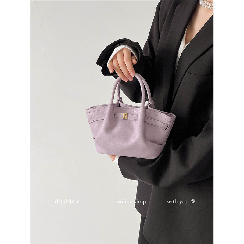 跨境波士顿保龄球包小众秋冬新款复古麂皮包包时尚潮流斜挎手提包