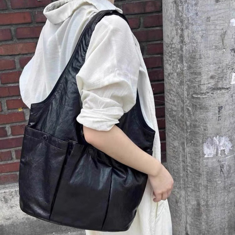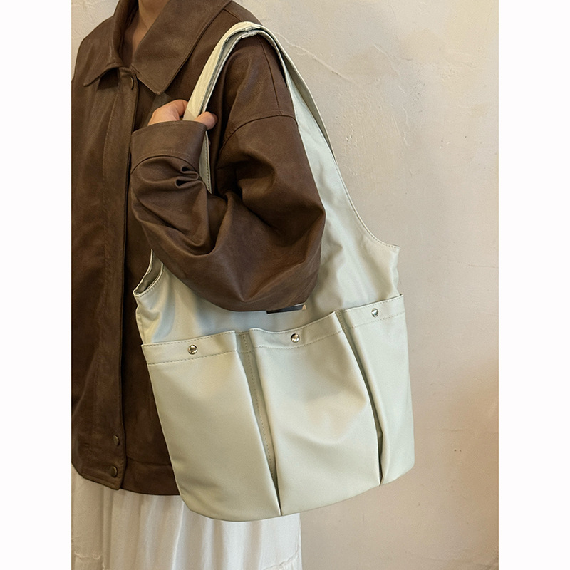 小众单肩腋下包大容量托特包女气质新款韩版褶皱多口袋通勤手提包