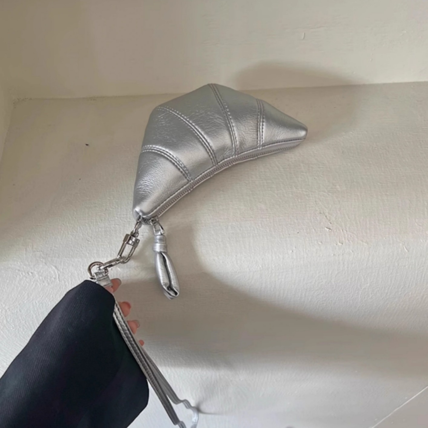 2025年流行のニッチデザイン、質感のあるソフトレザーのミニクロワッサン型レトロで上品なバッグ、ストラップ付き小銭入れ