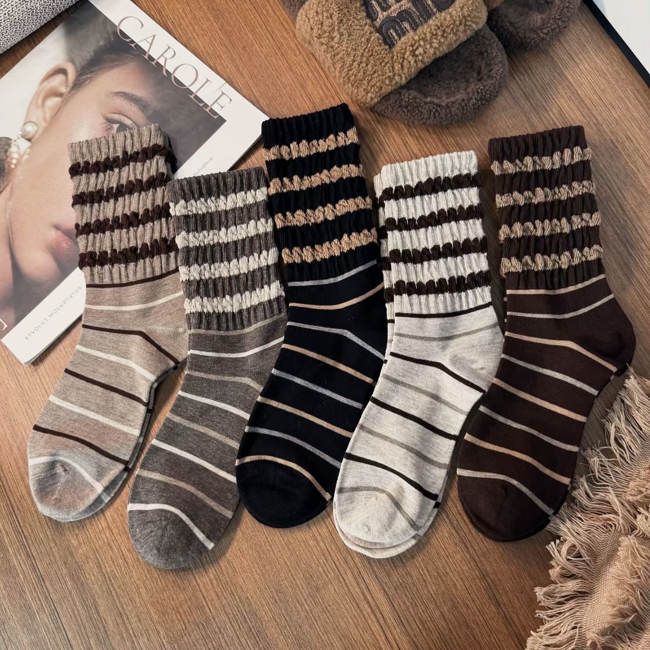袜子女中筒秋冬ins中长款松口袜韩版堆堆学院长筒条纹网红爆款潮