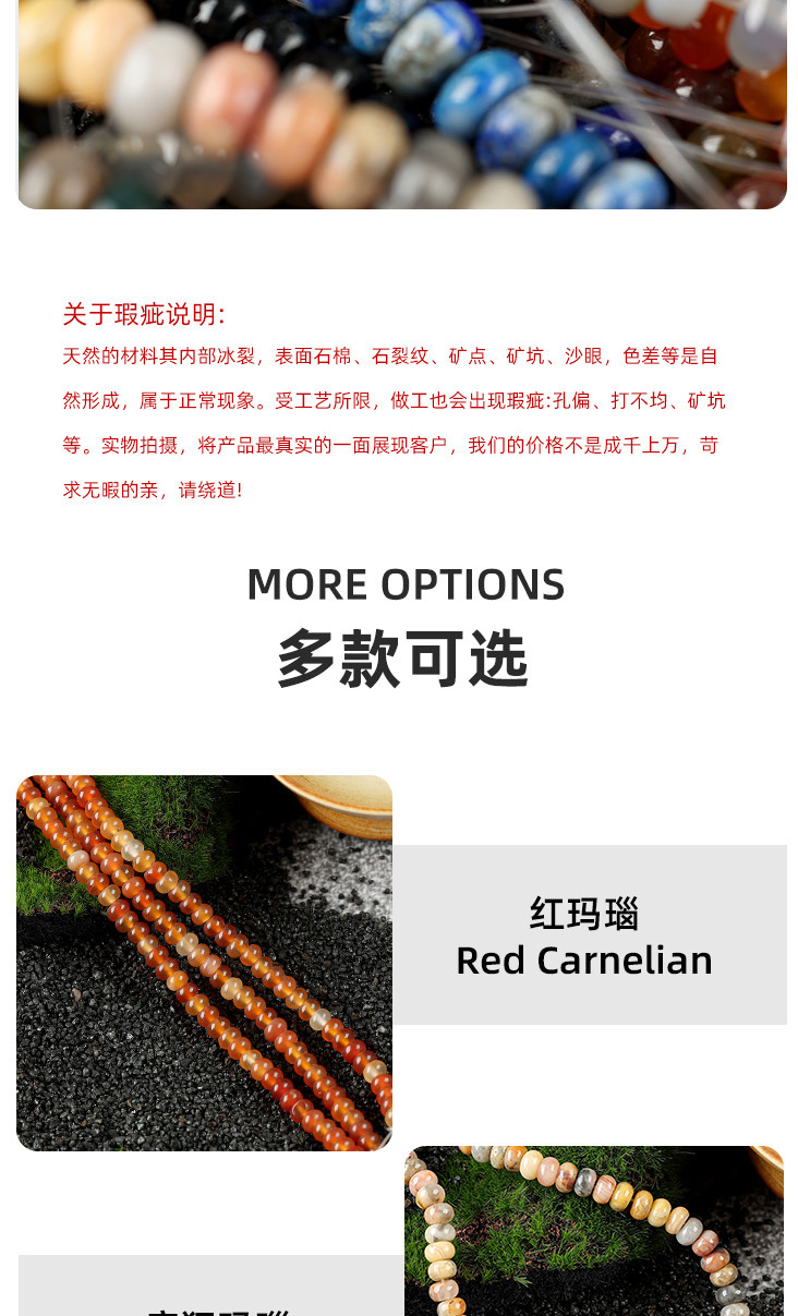 大穴珠水晶瑪瑙そろばん玉7*14*5mm散珠隔珠diyかんざし手串ペンダントアクセサリー部品