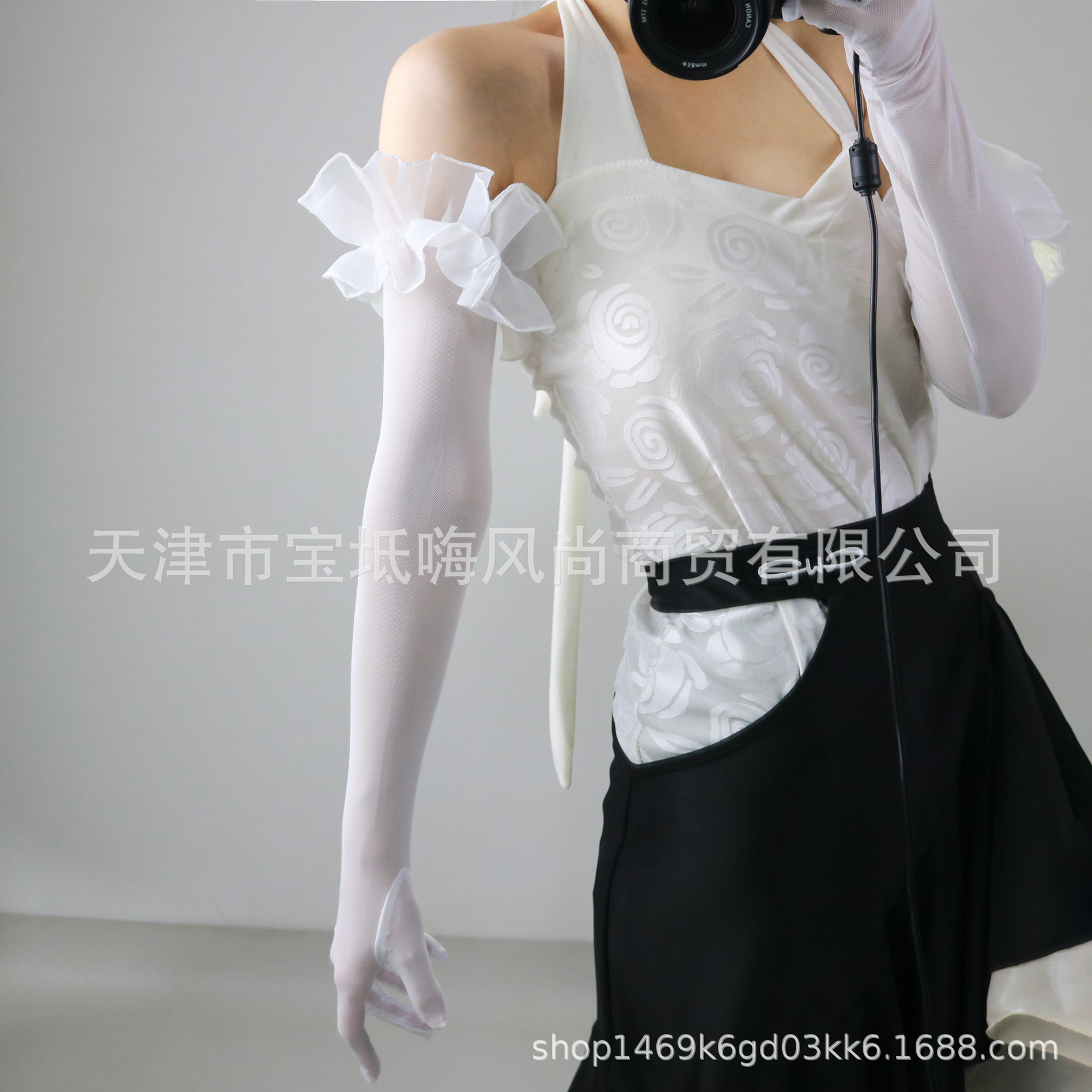 ウェディングドレスの手袋のパットの長い網の紗の形 * 映画館の写真の服の写真を撮って腕を遮って袖をかぶせます。