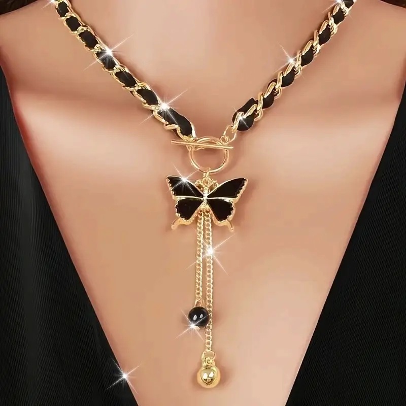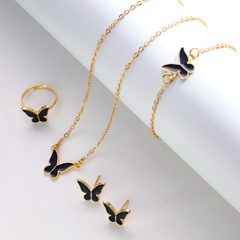 厂家批发跨境爆款时尚蝴蝶滴釉项链首饰套装百搭高级感气质锁骨链