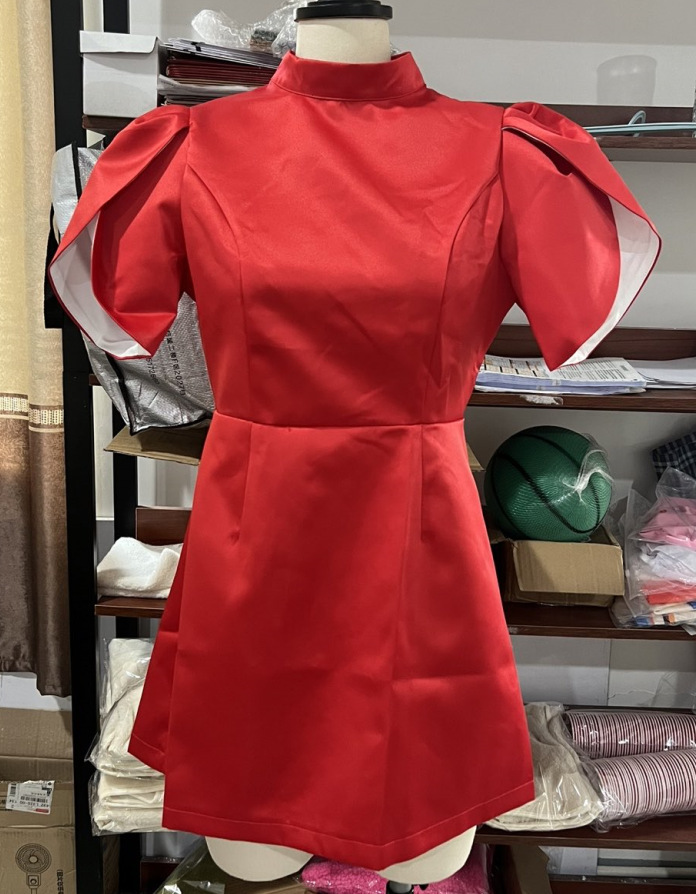卸売り2024夏新作欧米風女装赤い立襟蝶結び飾りワンピース