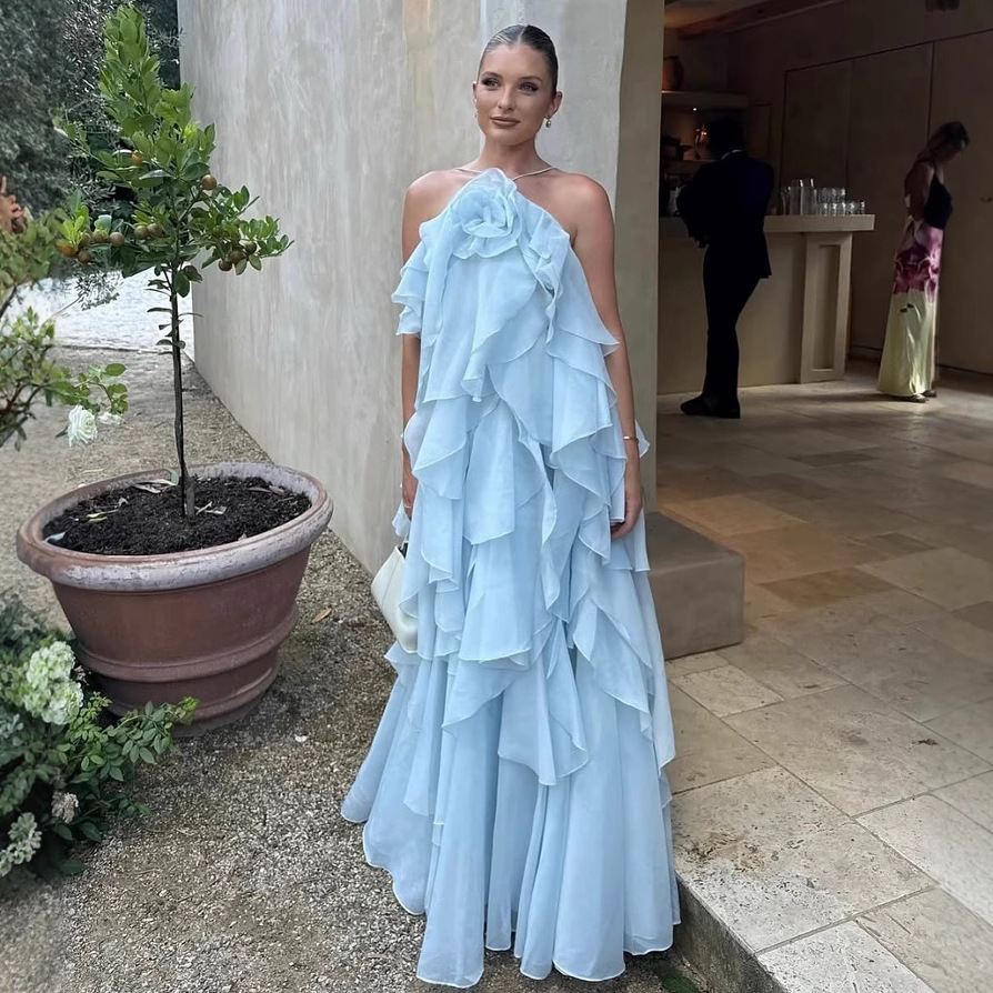 2025夏 海辺リゾート風 ホルターネック 立体フラワー キャミソールワンピース 小柄さん向け ピュアでセクシーなスタイル