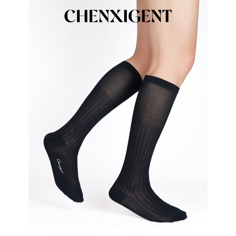 尘禧绅士绅裁系列藏青条纹正装商务经典款高筒丝光棉绅士袜