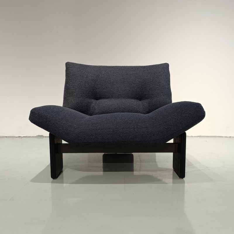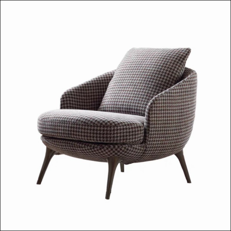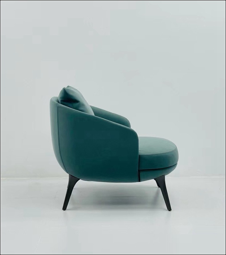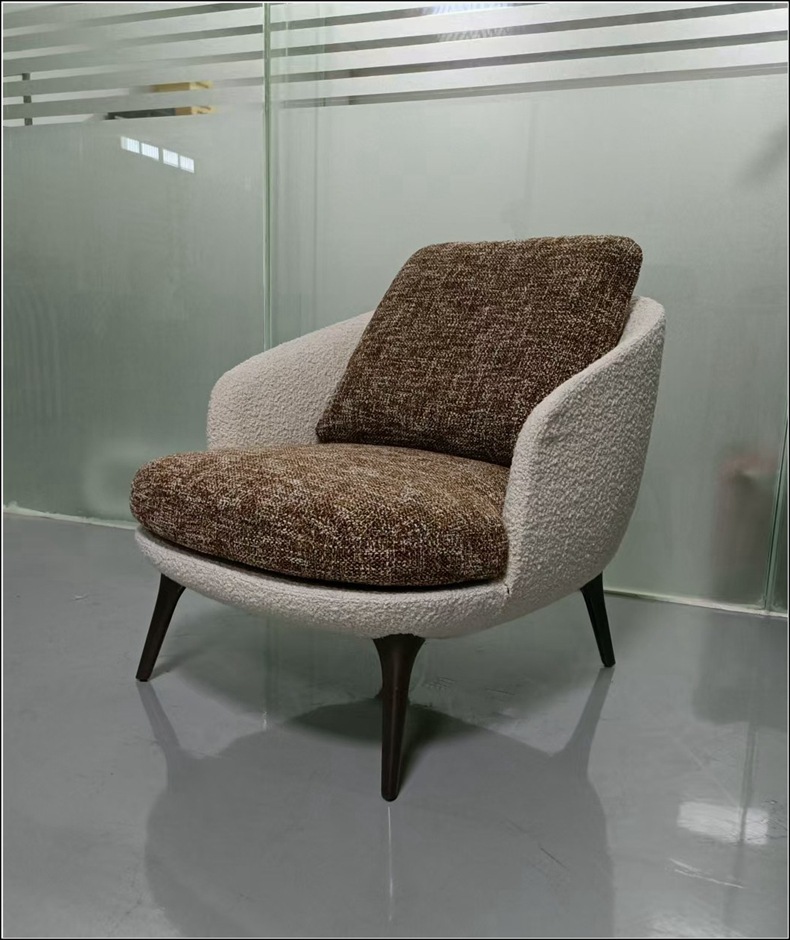 イタリアのミニマリストホームリビングルームシングルソファアッシュ木製フレームレザーファブリックデザイナーレジャーチェア