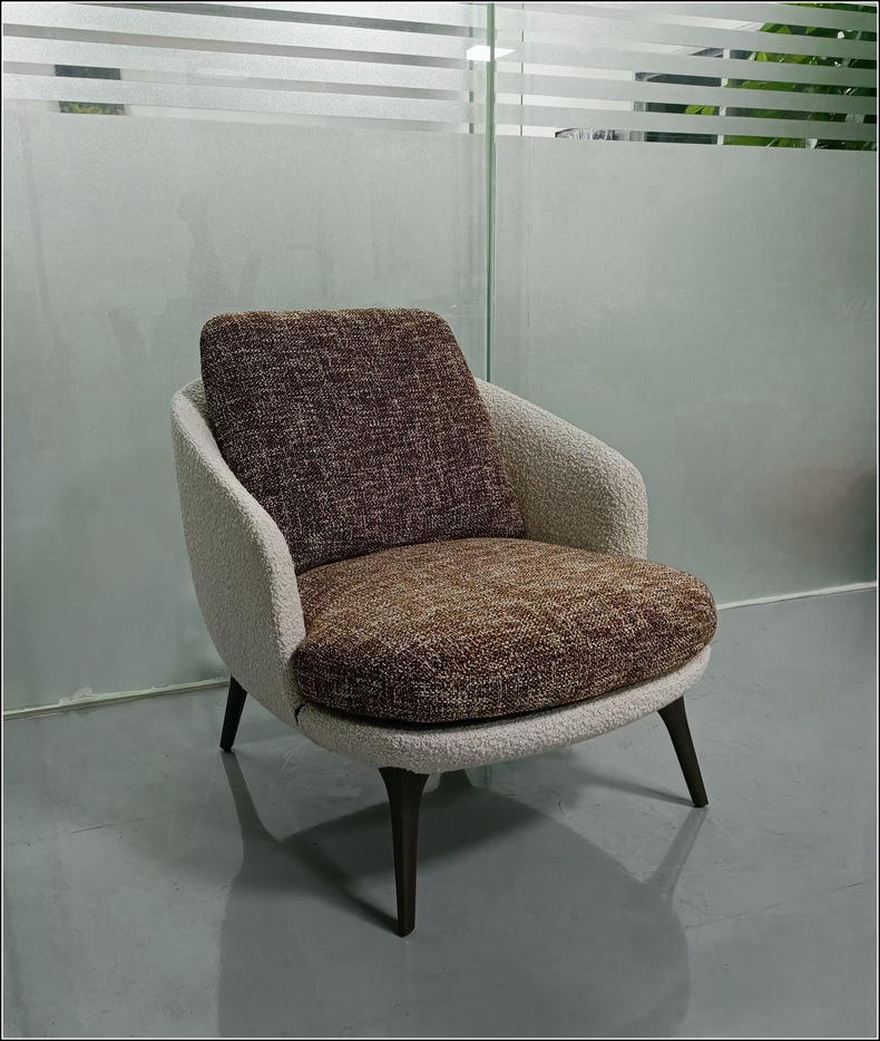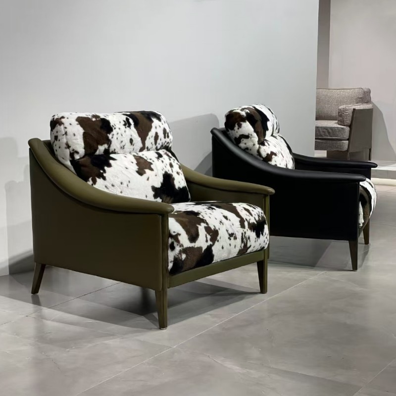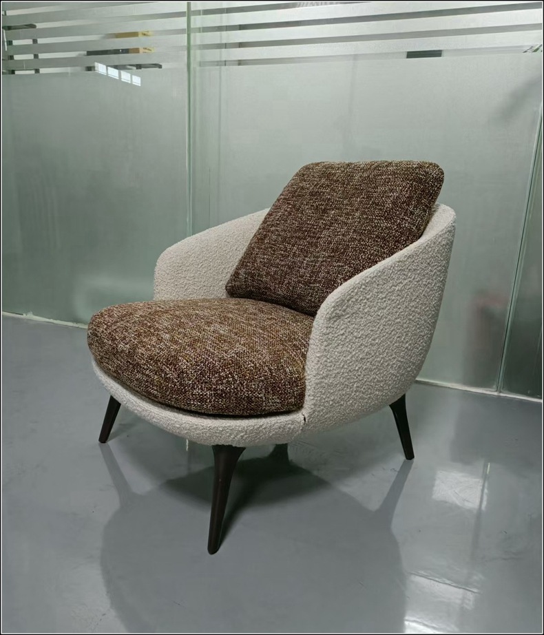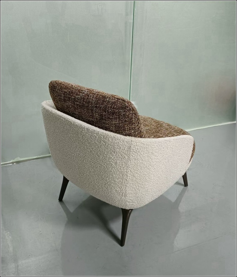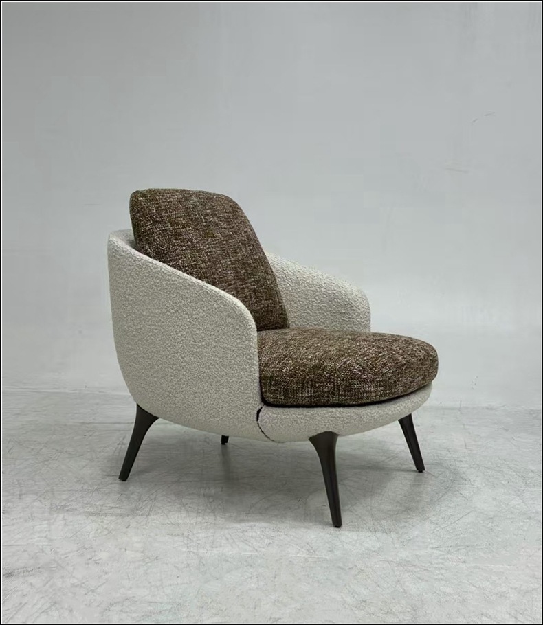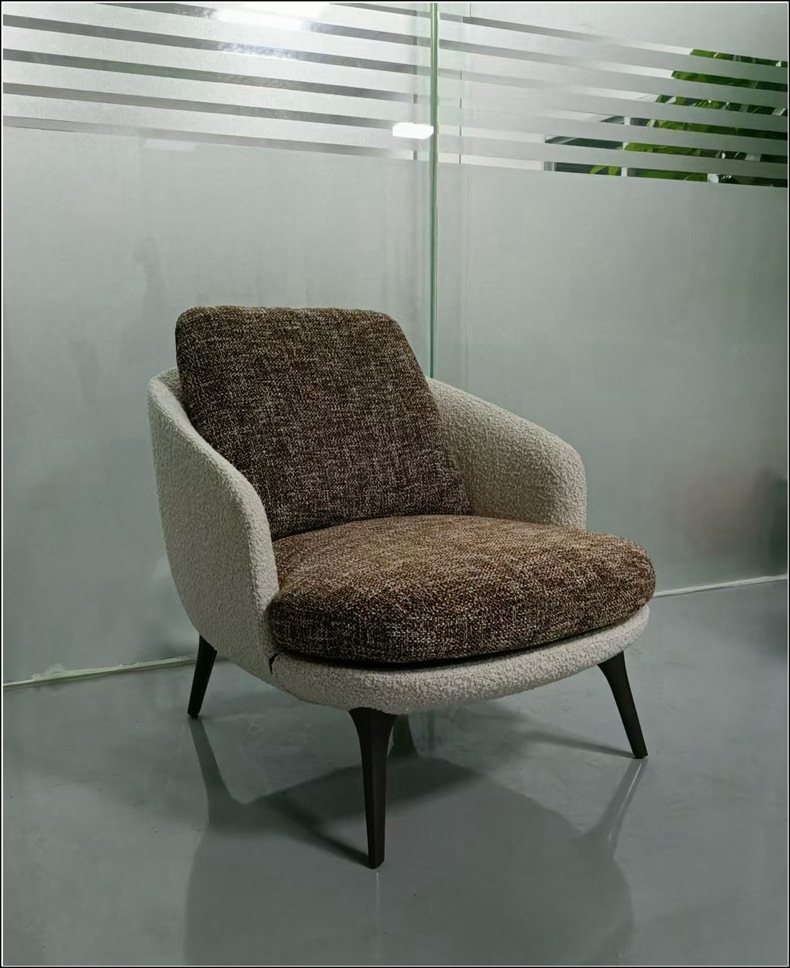 イタリアのミニマリストシングルソファリビングルームモデルルームデザイナーホワイトワックス木製レザーファブリックレジャーチェア