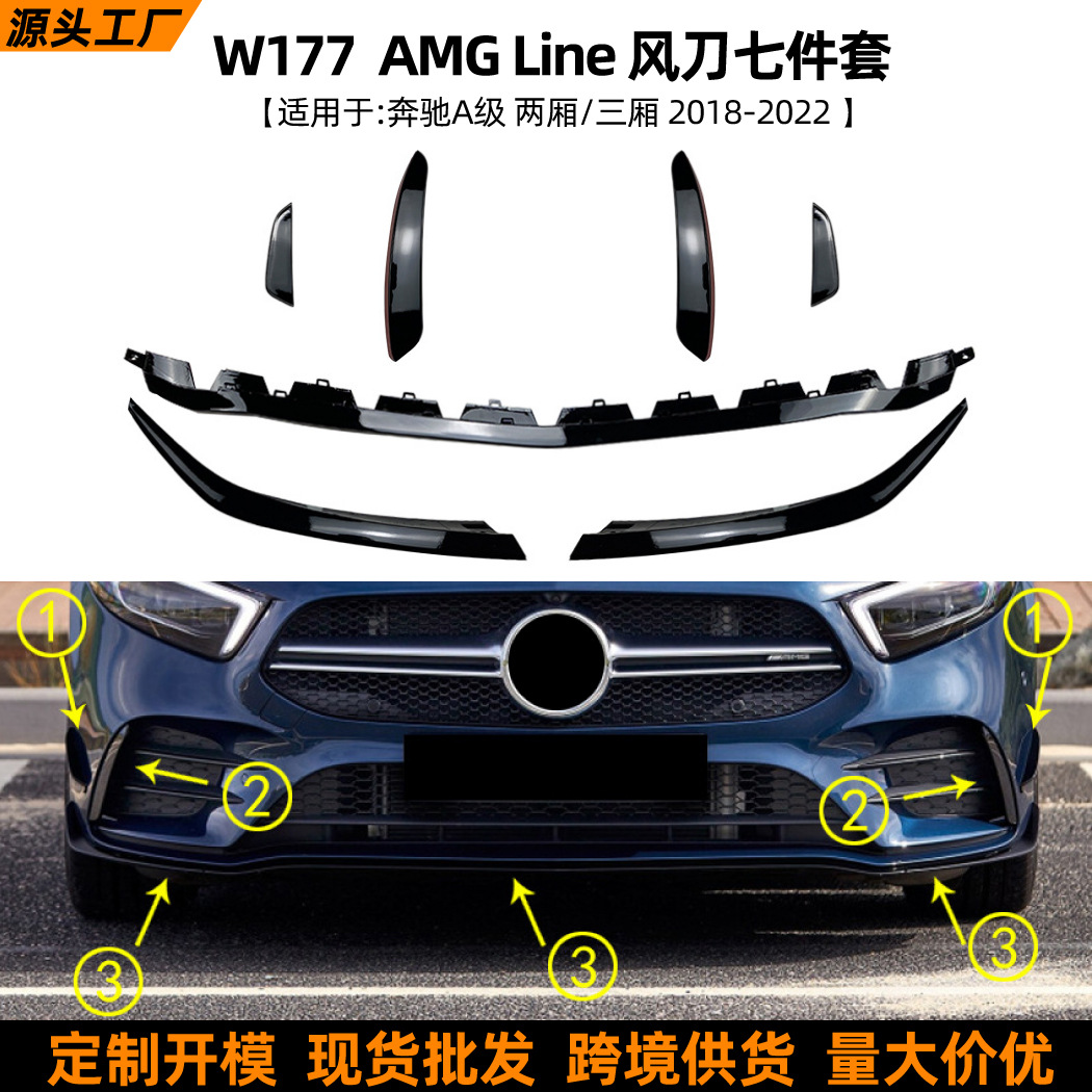 メルセデスベンツ A クラス w177 a220 a35 a180 a200 2018-22 フロントエアナイフ修正アクセサリーに適しています。