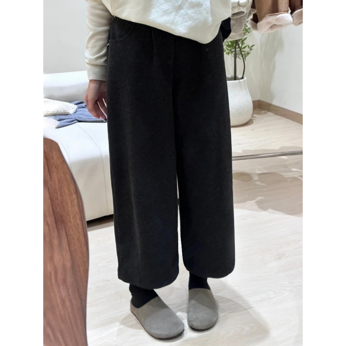 大きいサイズのカレー色の毛は広い足のズボンの子供の冬の保温のズボンのスカートの小さい体のa字のショートパンツの外で靴のズボンのスカートのズボンを着ます。