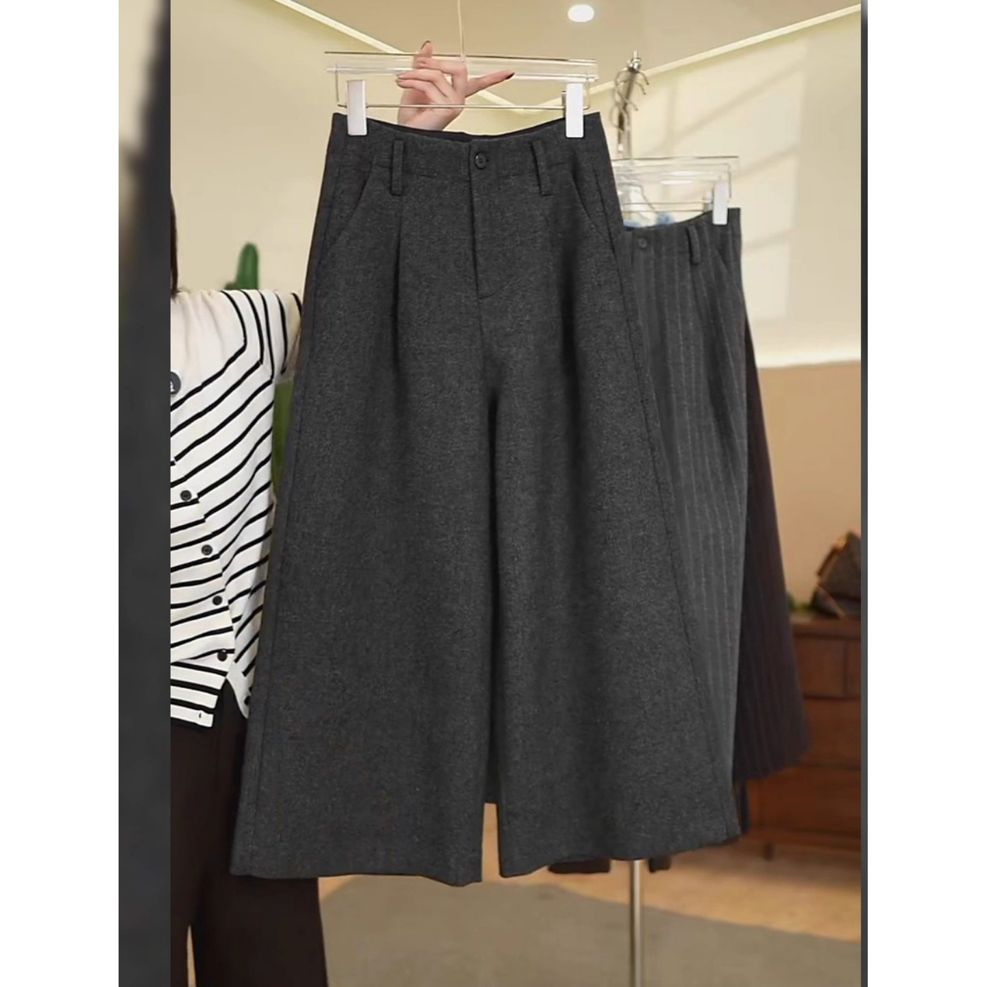 2025秋冬高级灰羊毛西装裤休闲复古九分阔腿裤大码梨型胖mm小个子