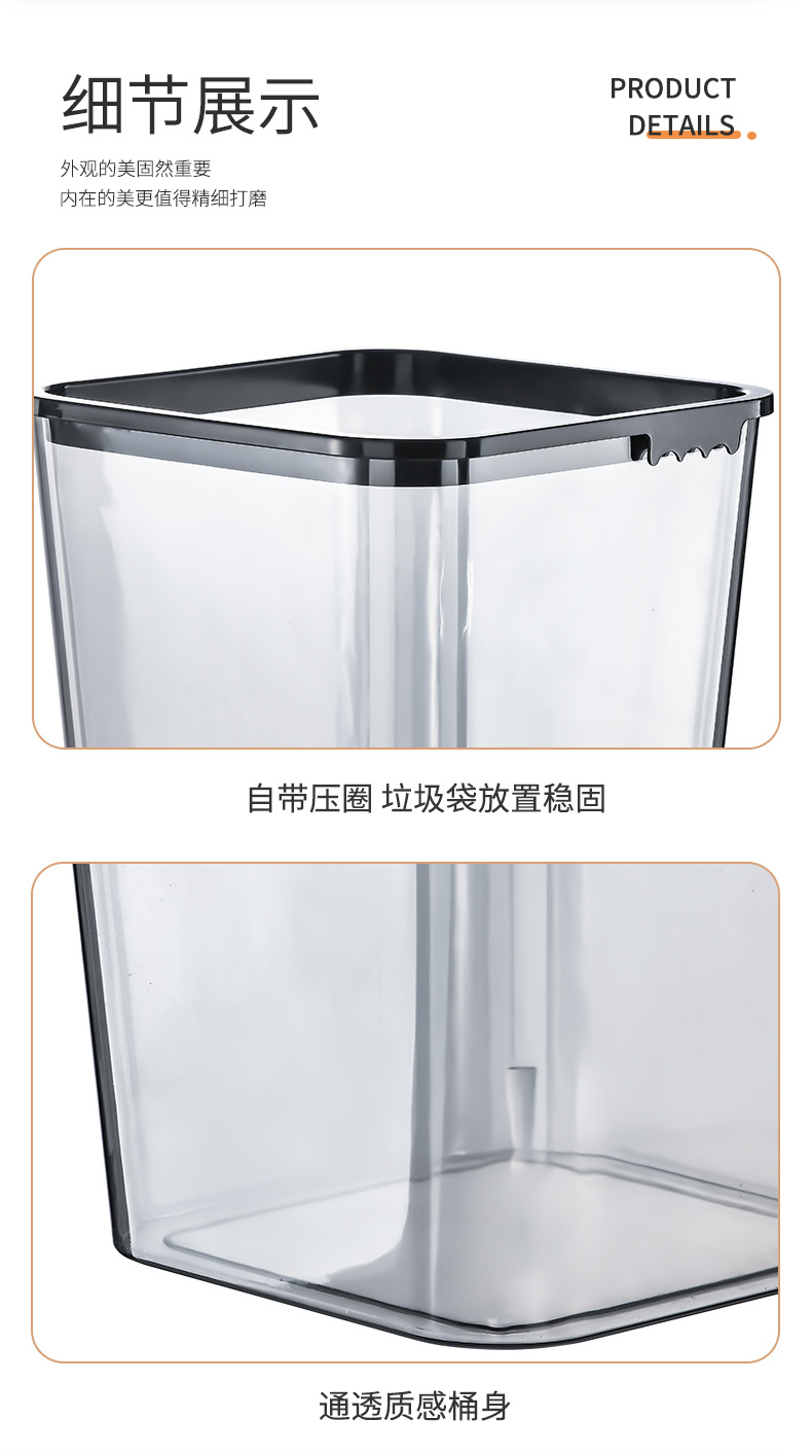 ゴミ箱家庭用大容量透明アクリルキッチンリビングルームのオフィスゴミ箱高颜値圧輪紙かご