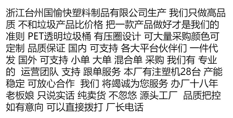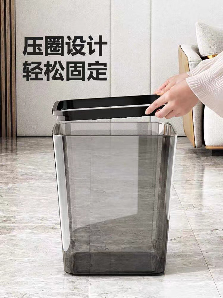 垃圾桶家用透明PET大号方形压圈i厨房客厅马桶办公室纸篓高颜值