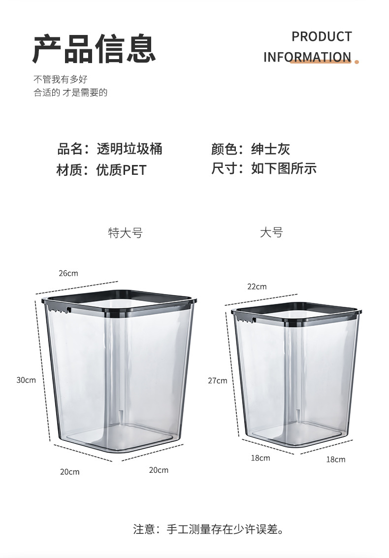 ゴミ箱家庭用透明PET大角型圧輪iキッチンリビングトイレ事務所紙かご高颜値
