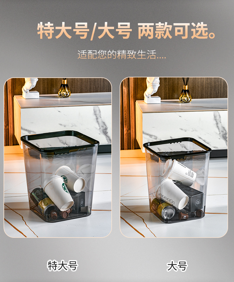 Ins風客間キッチン大サイズプラスチック角形ゴミ箱寝室トイレ寝室透明軽贅沢収納桶