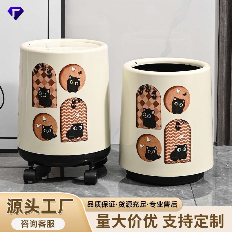 垃圾桶大号圆形家用高颜值厨房带轮大容量带盖客厅塑料加厚收纳桶