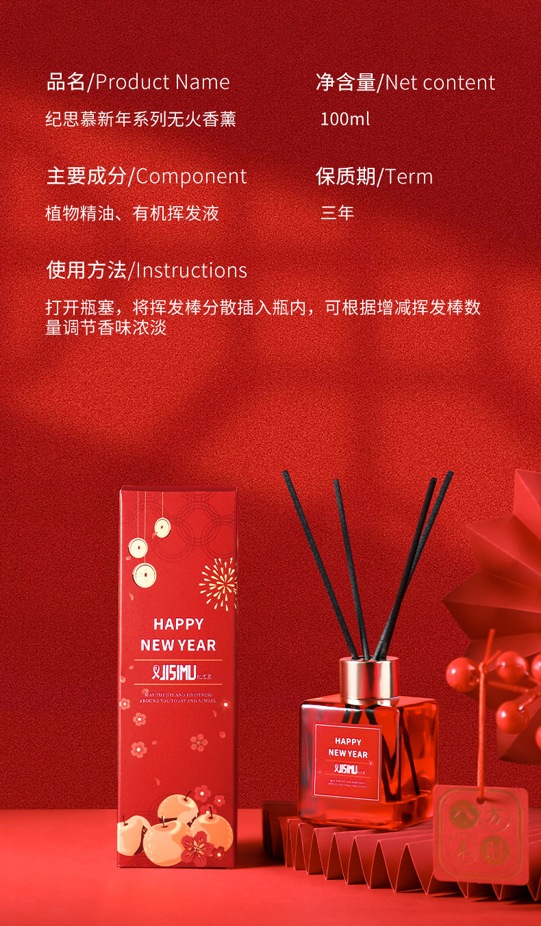 新年香薰100ml新春无火香氛家用室内除臭去异味空气持久清新留香