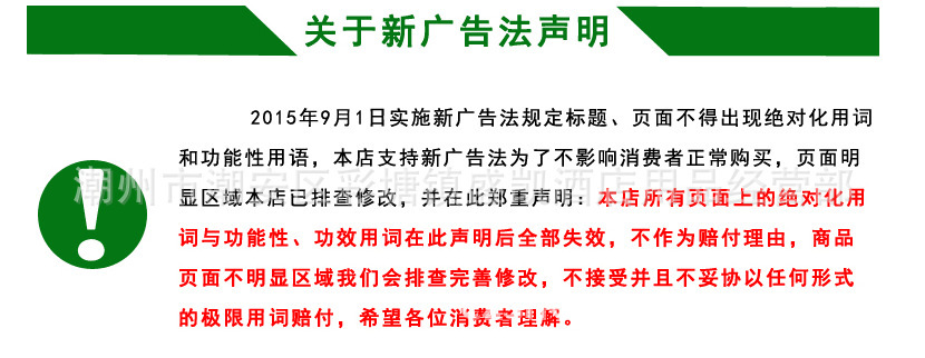 本店所有的商品照片为摄影师拍摄,后期精心修制及色彩调整,尽量与实际商品保持一致,但由于拍摄时用光、角度、显示器色彩偏差、个人对颜色的认知等方面的差异,导致实物可能会与照片存在一些色差,颜色以实际商品为准。请在购买前与我们客服充分沟通后做出慎重选择。色差问题将不被我们认可当退换货的理由!