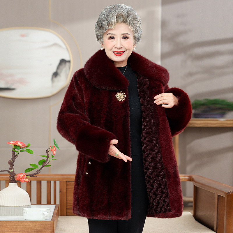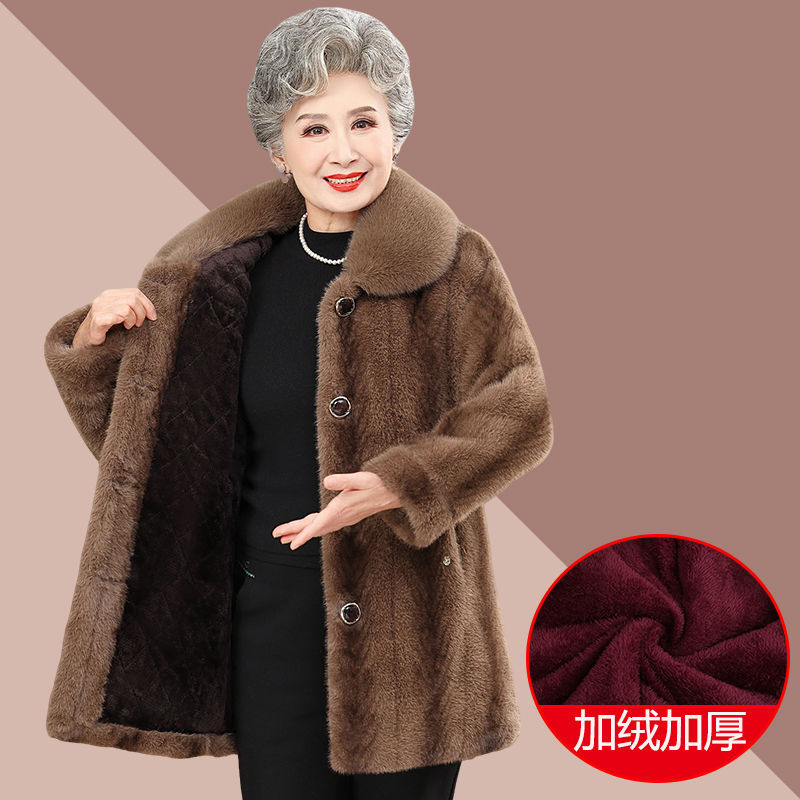 高齢者の冬の新しいミンクの綿入れのコートの女性のお母さんの冬の服とベルベットの厚いおばあちゃんの毛皮のコート