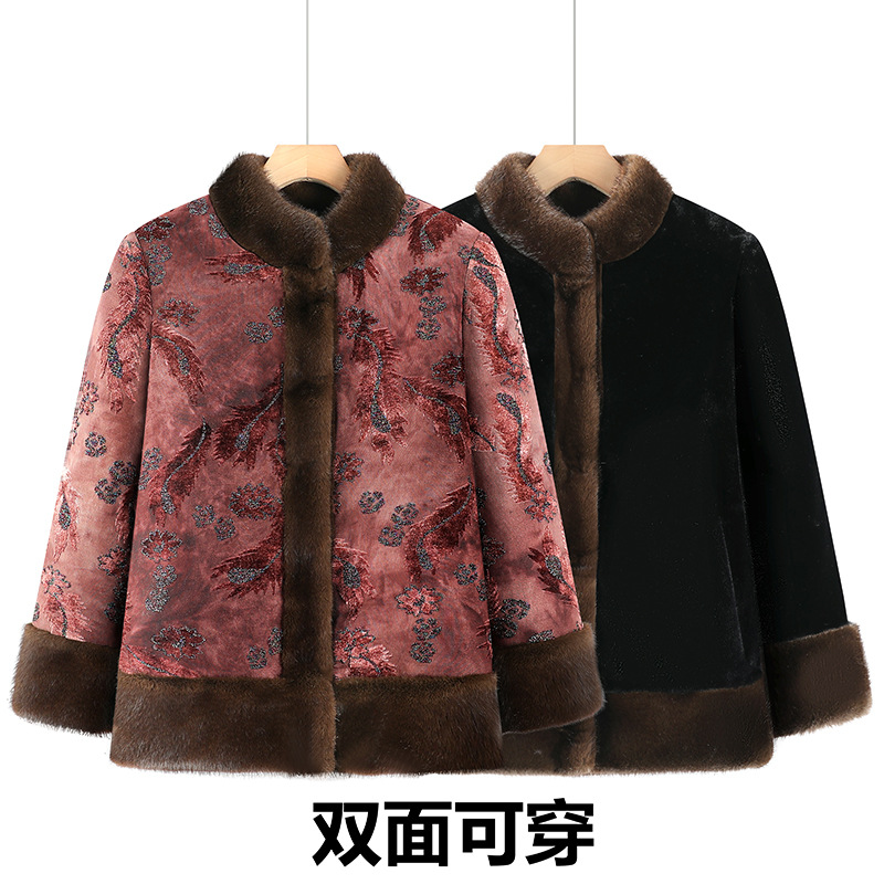 两面穿中式国风奶奶冬装皮毛一体外套女中老年妈妈装加绒保暖大衣