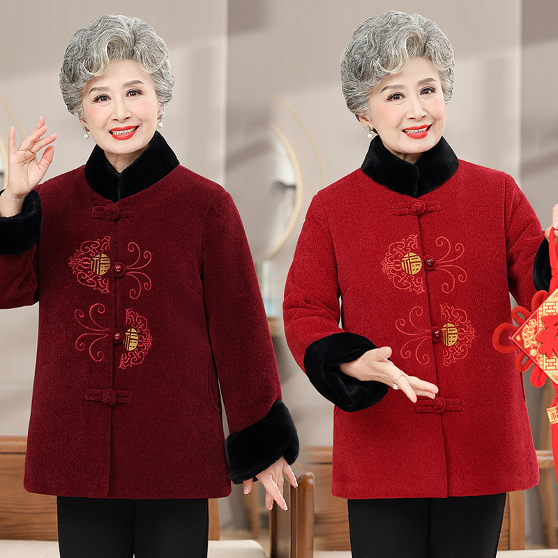 奶奶冬装棉袄加绒加厚70岁老年人妈妈棉衣老太太唐装过年保暖外套