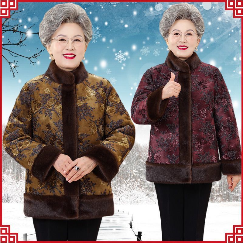 おばあさんの冬服のミンクのベルベットのコートの高齢者の冬の女性のベルベットの厚い服のおばあさんのお母さんの保温上着