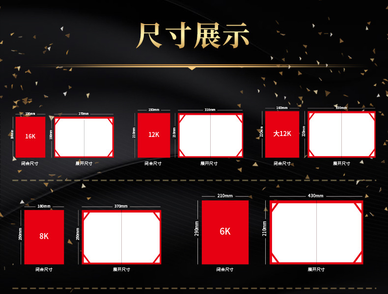 サイズ 12K小型サイズ(A4に近い展開),8K中型(B4に近い展開),6Kラージサイズ(A3に近い展開),6K+モデル(拡張標準A3),6K+モデル(片面A4),6K+モデル(A4両面配置)