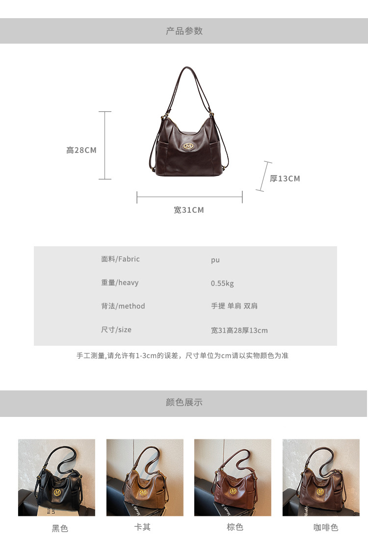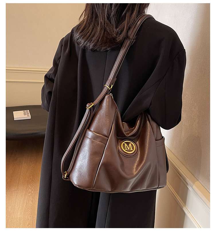 秋冬レトロ通勤バッグレディース2024新作大容量シングル肩斜めショルダーバッグ多機能リュックサック