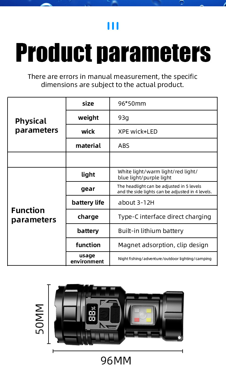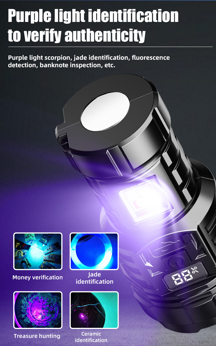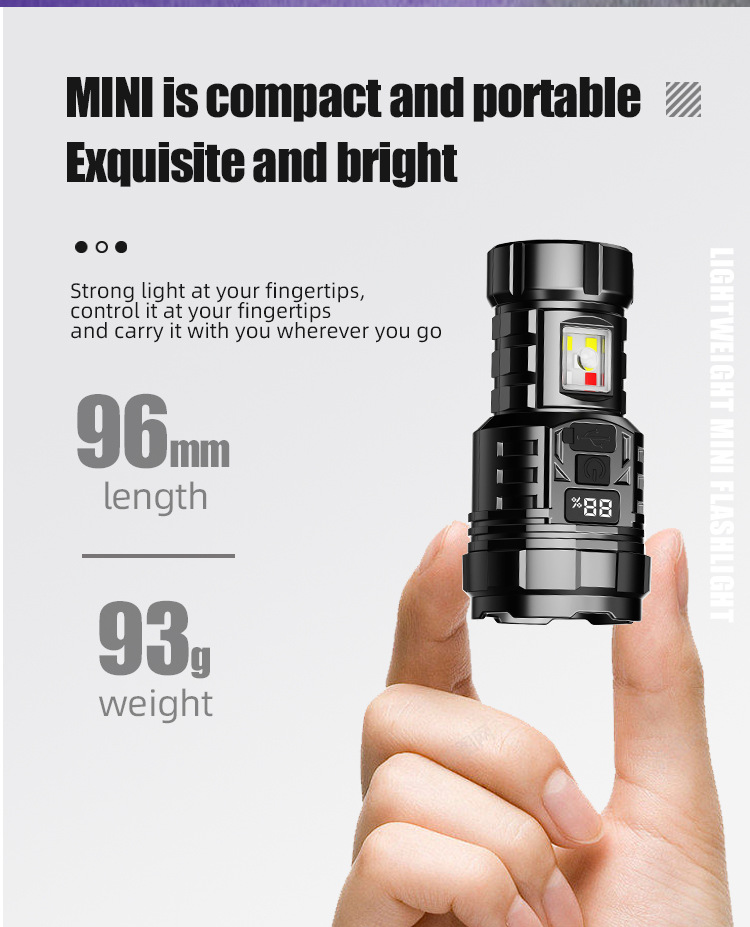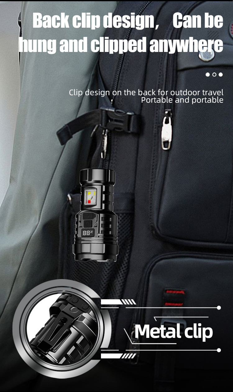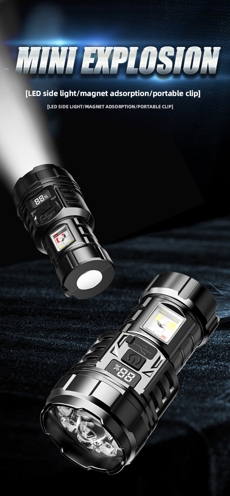 クロスボーダー新型懐中電灯多機能遠射親指灯デジタル表示サイドペンクリップテール強磁マルチライト懐中電灯