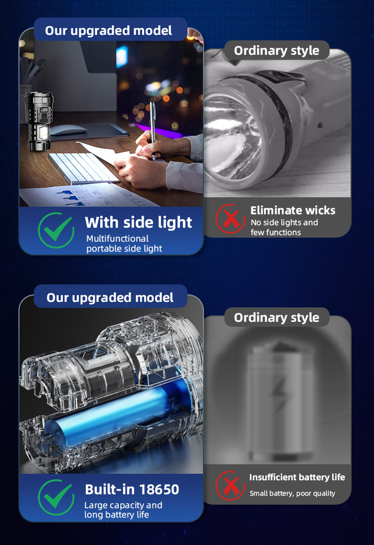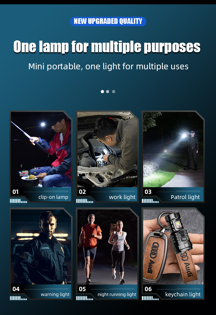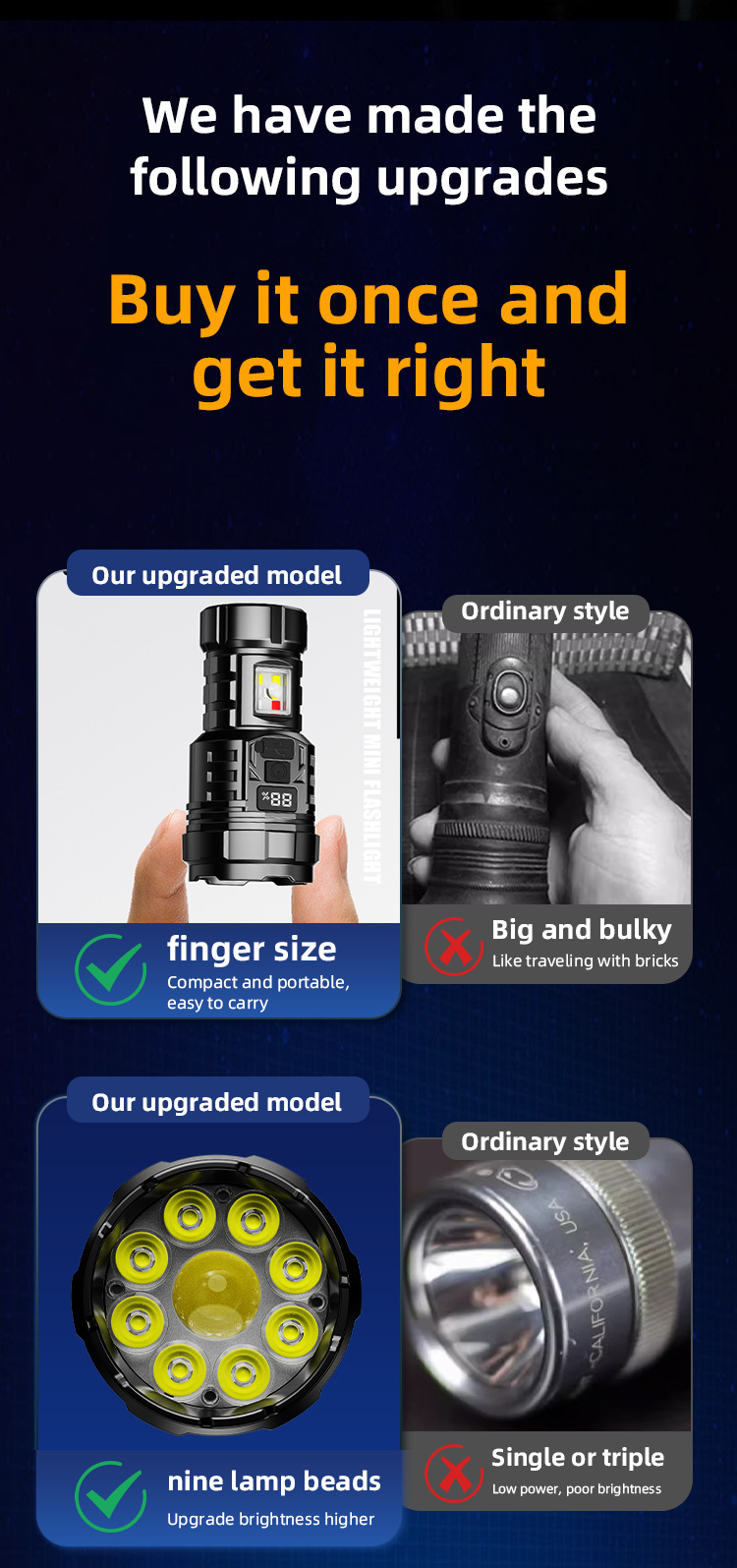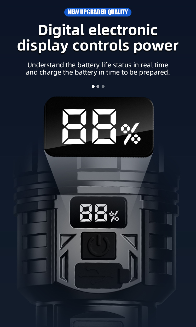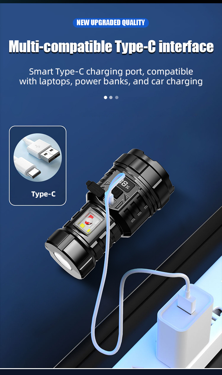 クロスボーダー新型懐中電灯多機能遠射親指灯デジタル表示サイドペンクリップテール強磁マルチライト懐中電灯