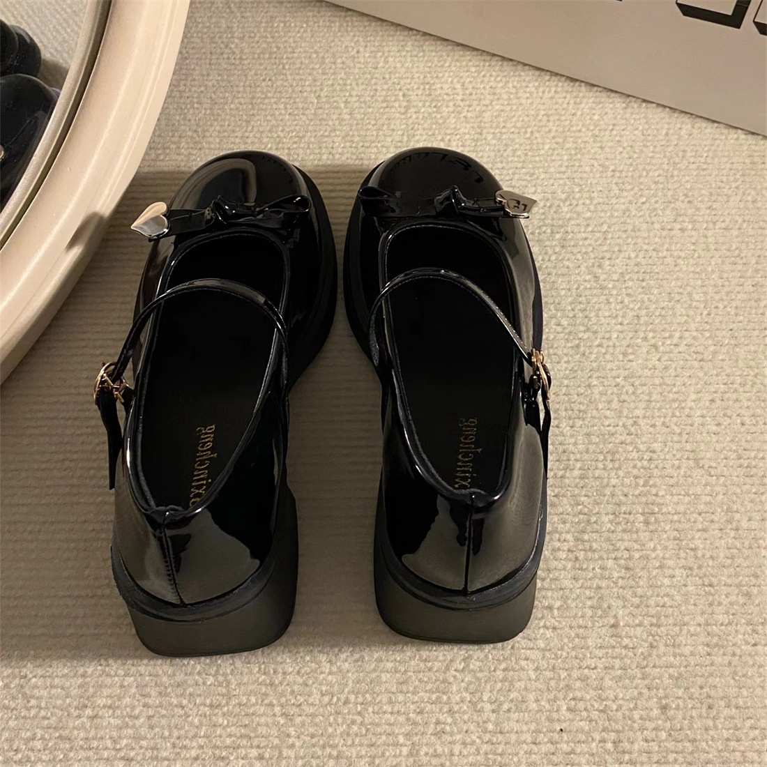 リボンレトロ英国jkスカート小さな革靴2025冬の新しい厚底フレンチラウンドトゥメリージェーンシューズ