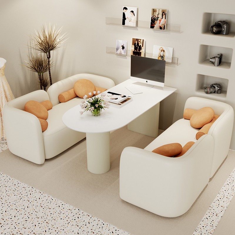 クリーム風影楼選片区テーブルと椅子の組み合わせウェディングショップはソファーレジャーネイル美容院の接待カードを交渉します。