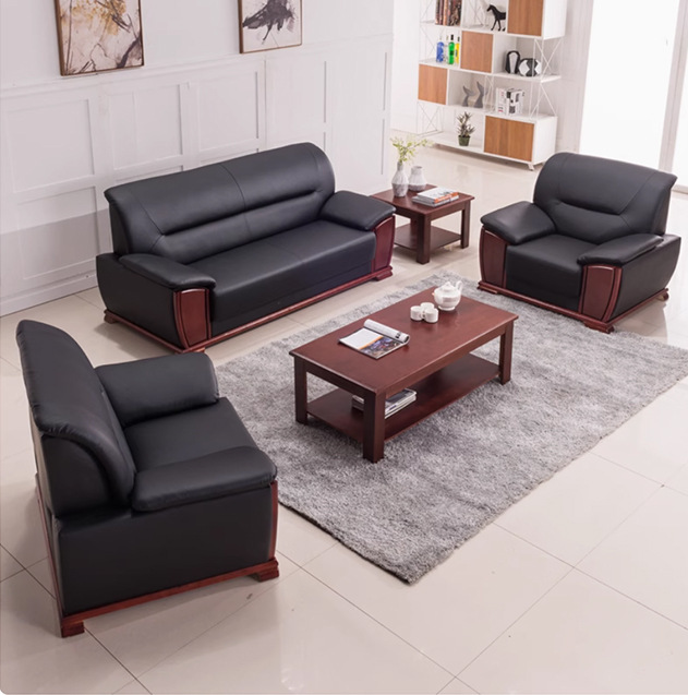本革モダンシンプルレセプションビジネスオフィスソファレジャーレセプション交渉オフィスソファコーヒーテーブル組み合わせ