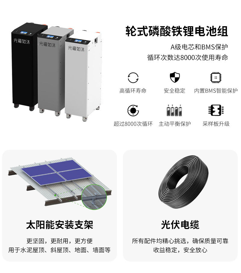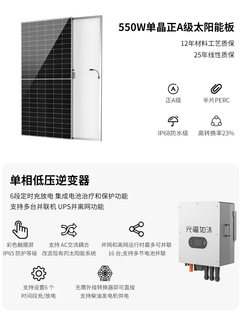 10kw 14.33度電池太陽光発電システム家庭用別荘全セット太陽光混合網システム